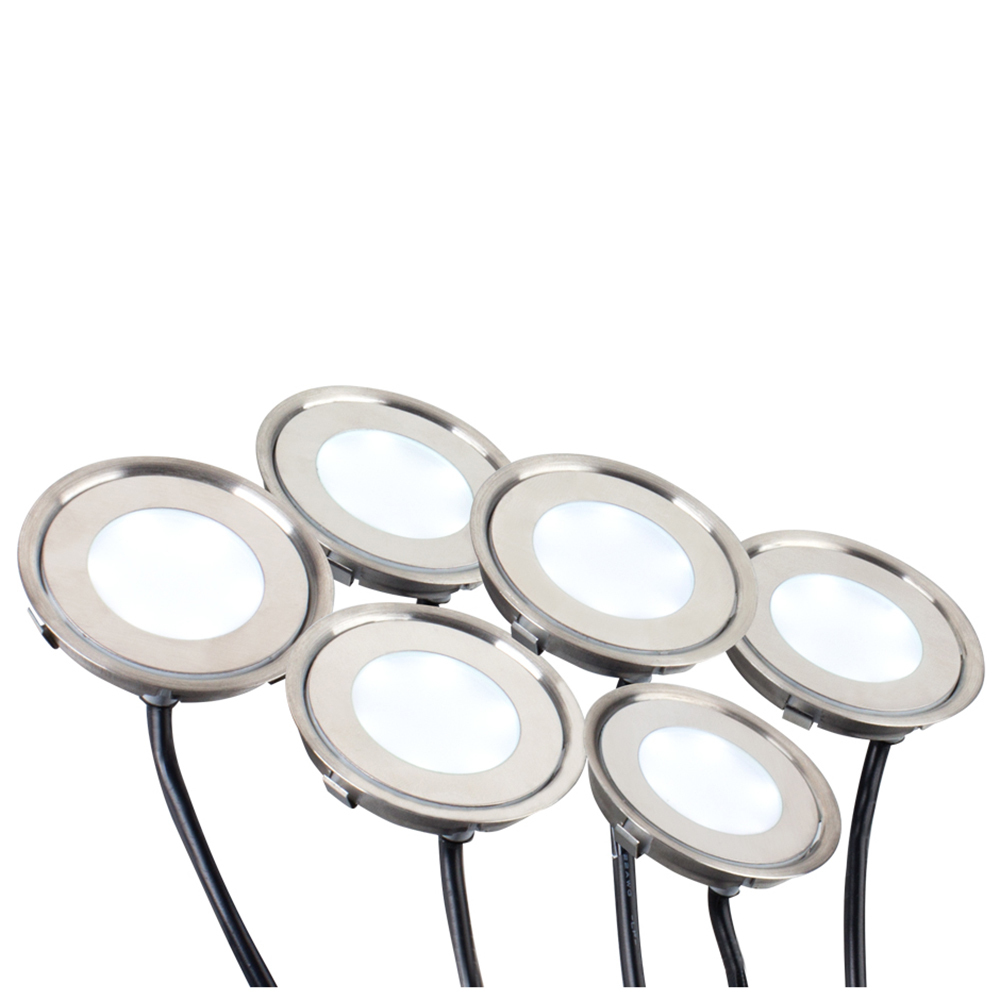 Набор в коробке 6шт герметичных IP67 круглых LED-светильники для установки в пол/стены. Цвет Дневной 4000К, мощность 6х0,5 Вт, питание DC12V. Размер Ф58хН9 мм, корпус - нержавеющая сталь+стекло. В комплекте: светильник с 1м кабелем - 6шт, драйвер 220В со шнуром 2м, соединительный провод 6х0,5м. Цена за комплект. Заказать товар 018238 вы можете в Москве по телефону 8 (495) 212-26-01.