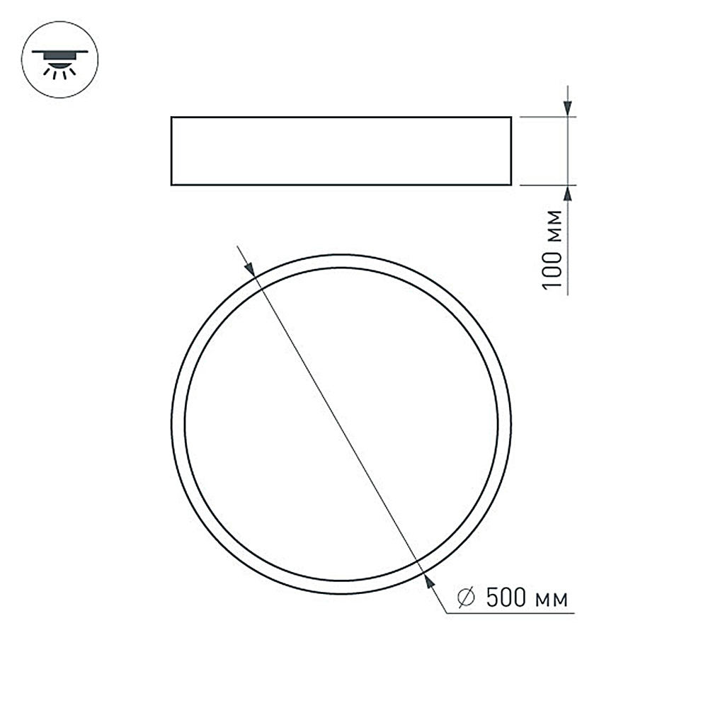 Светильник выполнен в современном минималистичном стиле. Черный круглый корпус диаметром 500 мм гармонично впишется в интерьер, а высота 100 мм позволяет сократить занимаемое пространство. Изготовленный из прочного алюминия и акрила, он гарантирует долговечность и надежность эксплуатации. Металлический корпус защищает светильник от механических повреждений, соответствуя классам безопасности и эстетическим требованиям профессионалов.