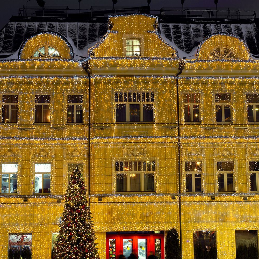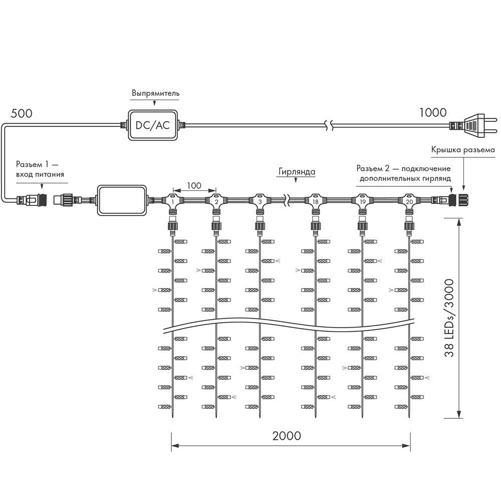 Светодиодный Занавес Classic. Размер 2000x3000 мм (длина 2000 мм, высота 3000 мм). 20 ниспадающих нитей длиной 3000 мм. 760 светодиодов размером 7 мм. Основной цвет свечения ТЕПЛЫЙ БЕЛЫЙ (3000 К), эффект мерцания редких точек БЕЛЫЙ (6000К) с резким световым рисунком (прозрачная вогнутая линза), соотношение светодиодов: 634 теплых постоянного свечения / 126 белых с мерцанием. Эффект частого мерцания. Провод прозрачный, ПВХ. Питание 230 В, Мощность 70 Вт, защита IP65, применение в помещении и на улице под навесом. Аксессуар для подключения и выбора режима свечения в комплекте. Заказать товар 024869 вы можете в Москве по телефону 8 (495) 212-26-01.