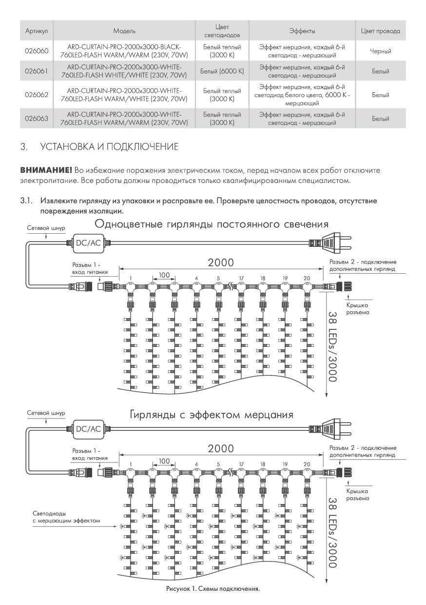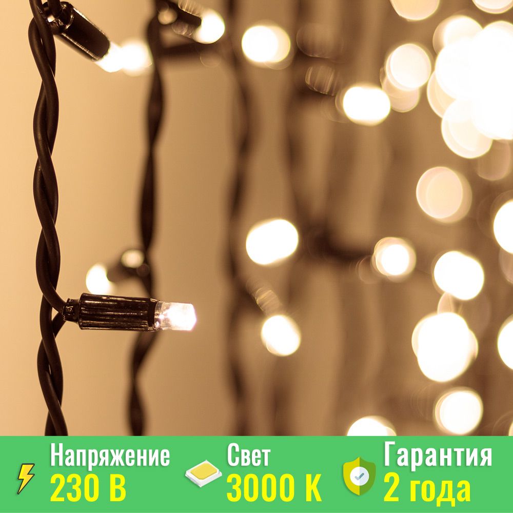 Светодиодный Занавес Pro. Размер 2000x3000 мм (длина 2000 мм, высота 3000 мм). 20 ниспадающих нитей длиной 3000 мм. 760 светодиодов размером 7 мм. Основной цвет свечения ТЕПЛЫЙ БЕЛЫЙ (3000 К), эффект мерцания редких точек ТЕПЛЫЙ БЕЛЫЙ (3000К) с резким световым рисунком (прозрачная вогнутая линза), соотношение светодиодов: 634 теплых постоянного свечения / 126 теплых с мерцанием. Эффект частого мерцания. Провод черный, каучук. Питание 230 В, Мощность 70 Вт, защита IP65, применение в помещении и на улице под навесом. Аксессуар для подключения и выбора режима свечения в комплекте. Заказать товар 026060 вы можете в Москве по телефону 8 (495) 212-26-01.