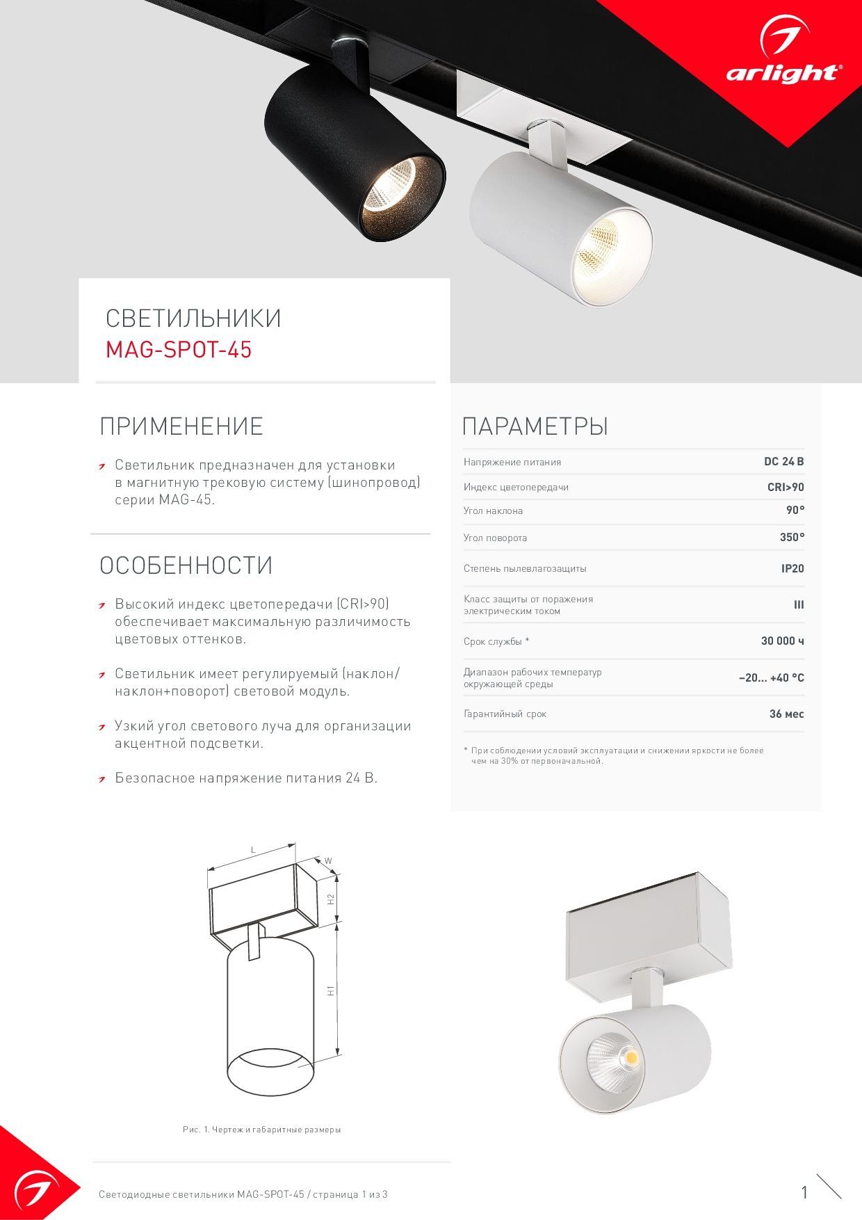 Светильник MAG-SPOT-45-R85-7W Day4000 (BK, 24 deg, 24V) (Arlight, IP20 Металл) Arlight 026967