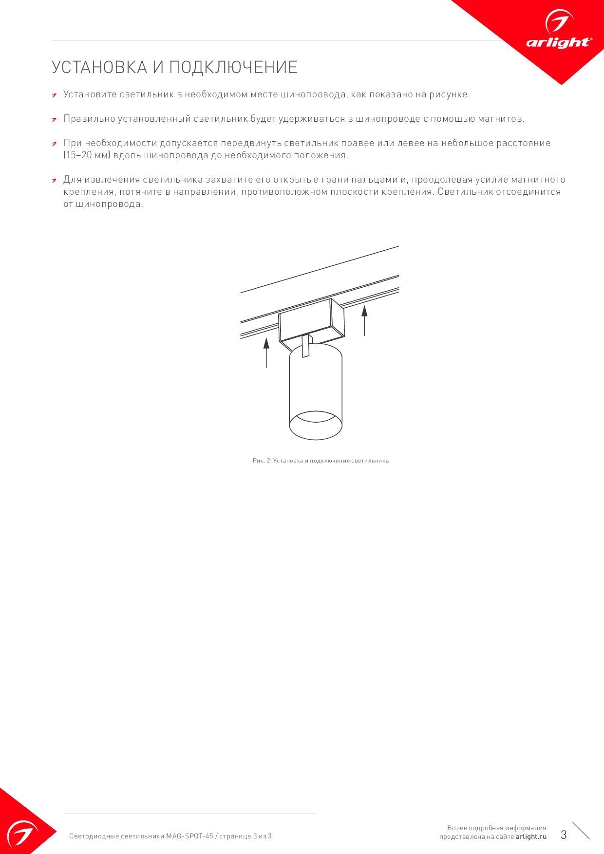 Светильник Arlight MAG-SPOT предлагает не только отличные характеристики, но и простоту установки и эксплуатации. Работая при безопасном напряжении 24 В, он подключается к шинопроводу с помощью магнитов, что позволяет мгновенно закрепить его на месте.