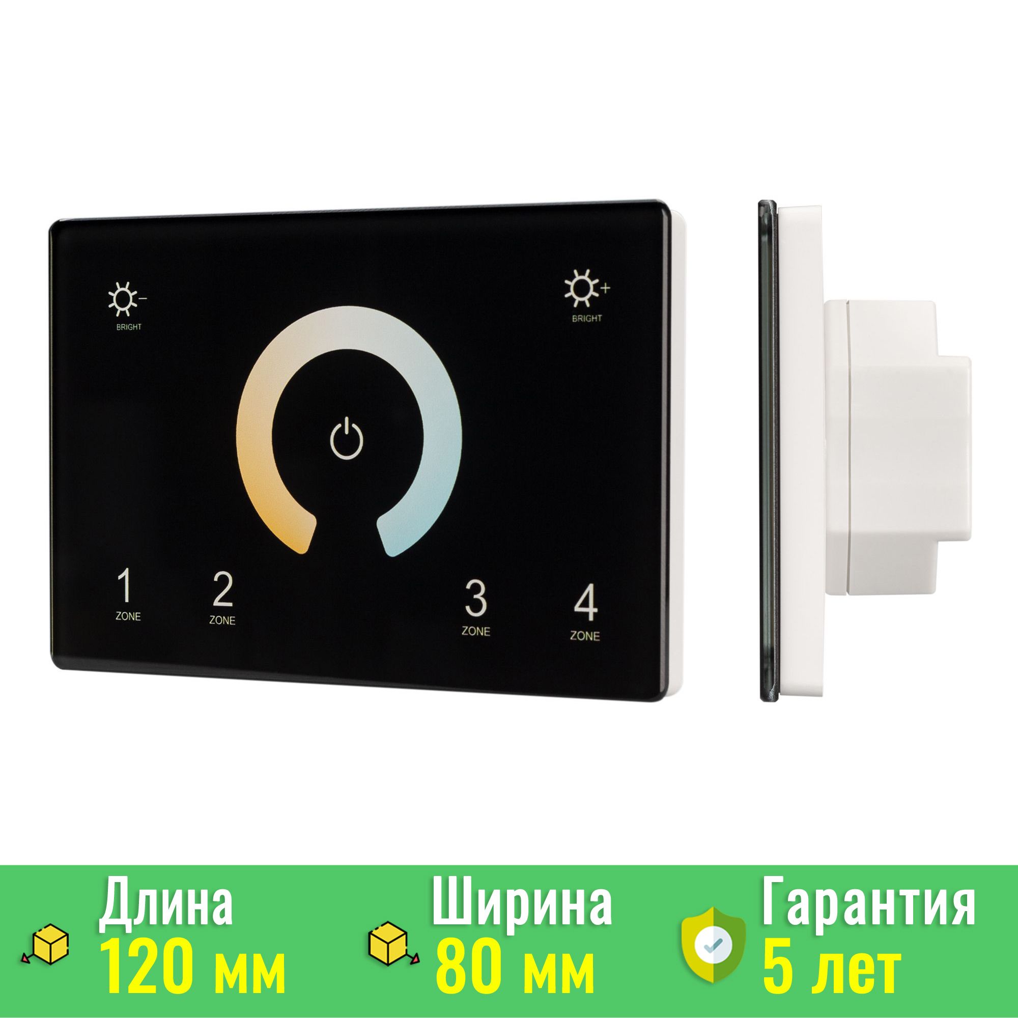 Устройство предназначено для управления мультибелыми источниками света с изменяемой цветовой температурой (известные как MIX или CCT источники) через технологию ШИМ (широтно-импульсной модуляции). Панель позволяет пользователям легко включать и выключать свет, регулировать яркость, а также изменять цветовую температуру освещения в четырёх различных зонах. Гибкость настройки освещения делает этот продукт идеальным как для домашнего использования, так и для коммерческих решений, таких как офисы, рестораны, отели и другие объекты.