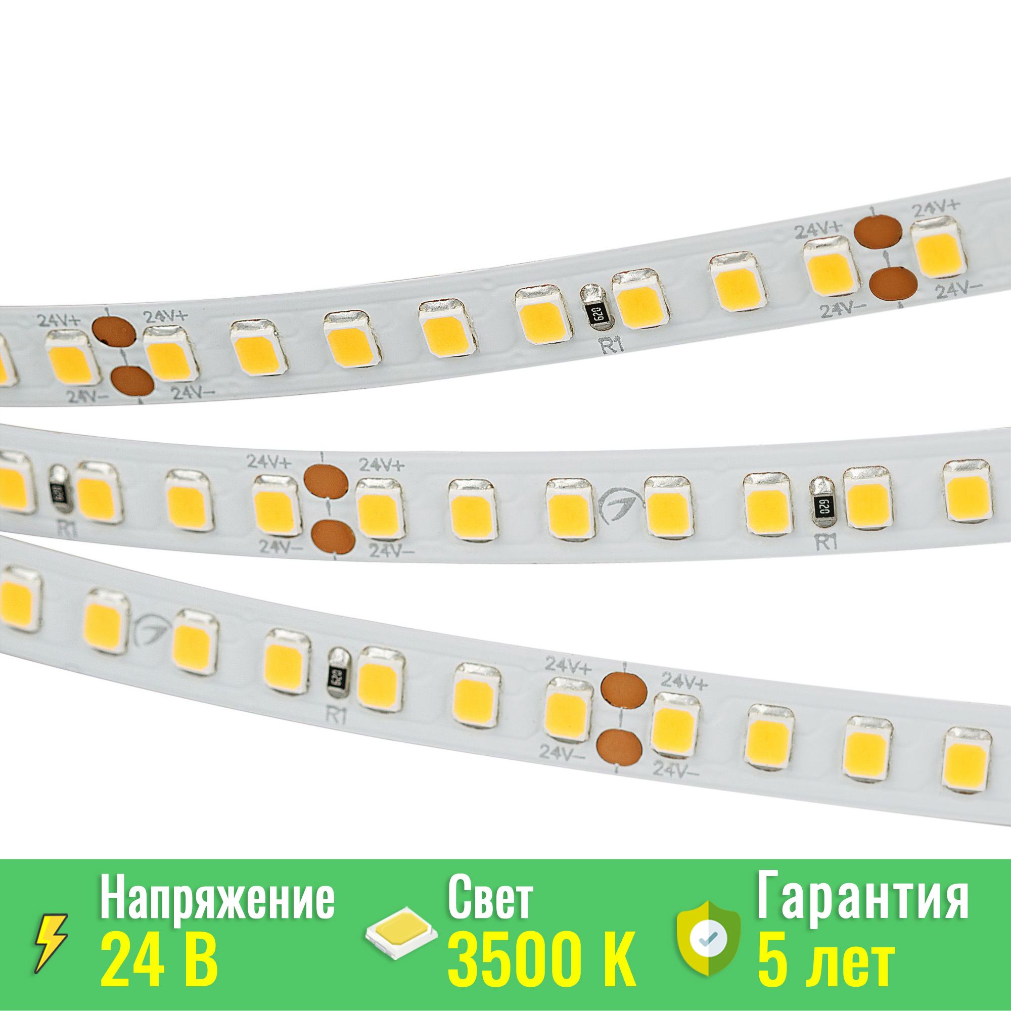 Светодиодная лента (монтажная бобина 50м) RT-A160, открытая. Светодиоды 2835, 160 шт/м (8000 шт на 50 м), белая плата, ширина 8 мм, скотч 3M. Цвет ТЁПЛЫЙ 3500 K, цветопередача CRI>85, угол 120°. Питание 24V, мощность 12 Вт/м (600 Вт на 50 м). Размеры 50000x8x1.5 мм. Мин.отрезок 50 мм, 8 светодиодов. Цена за 1 м. Разрезать перед подключением. Макс.длина подключения 5 м! Заказать товар 028562(2) вы можете в Москве по телефону 8 (495) 212-26-01.