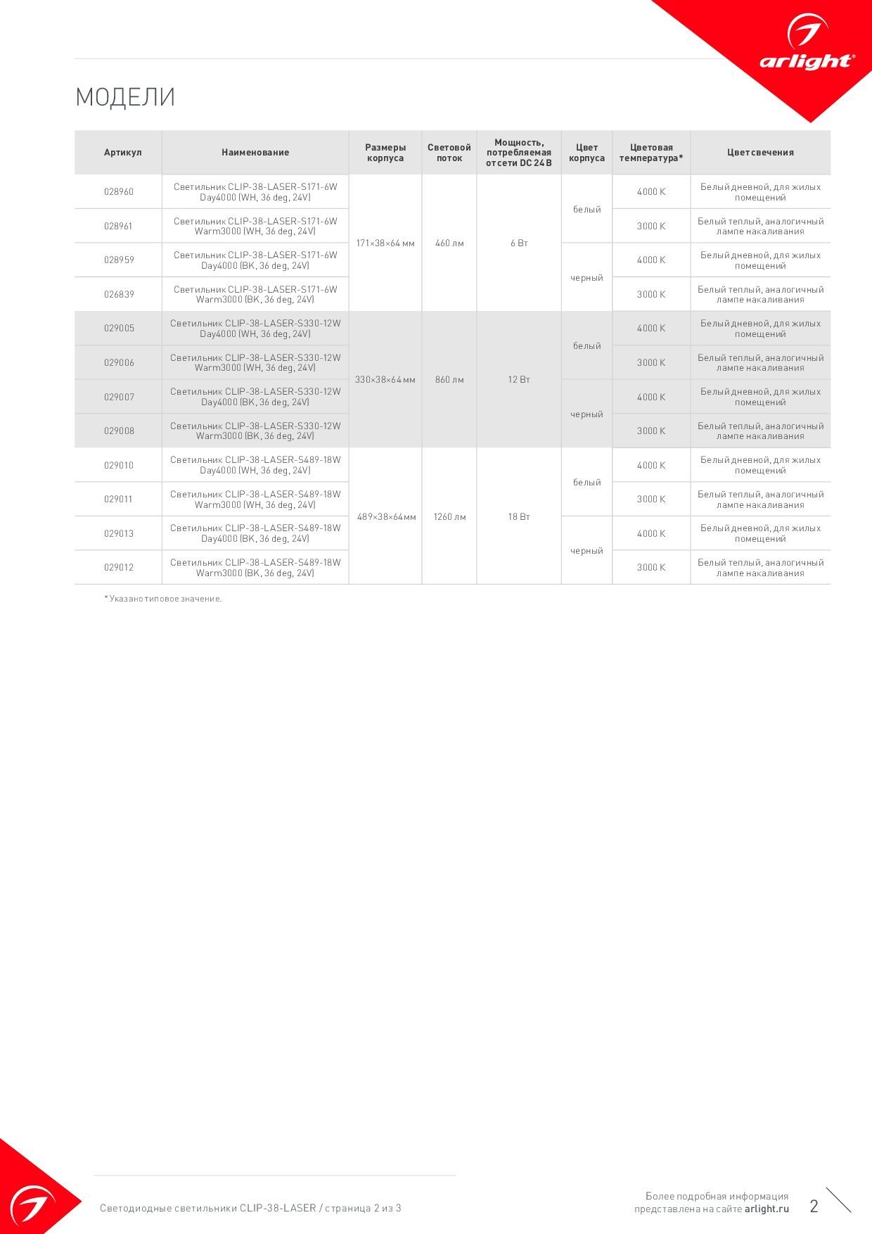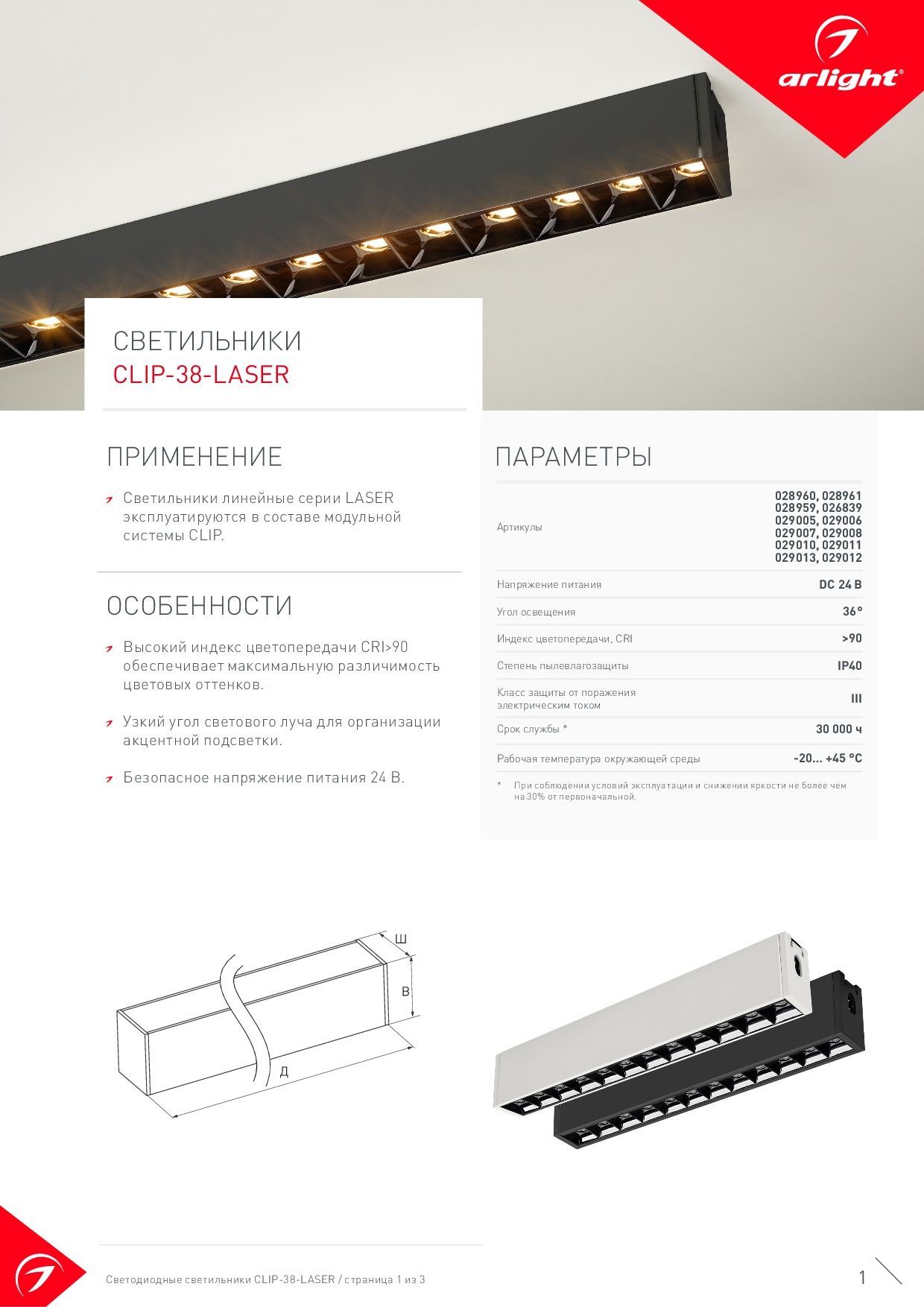 Светильник CLIP-38-LASER-S171-6W Day4000 (WH, 36 deg, 24V) (Arlight, IP40 Металл) Arlight 028960