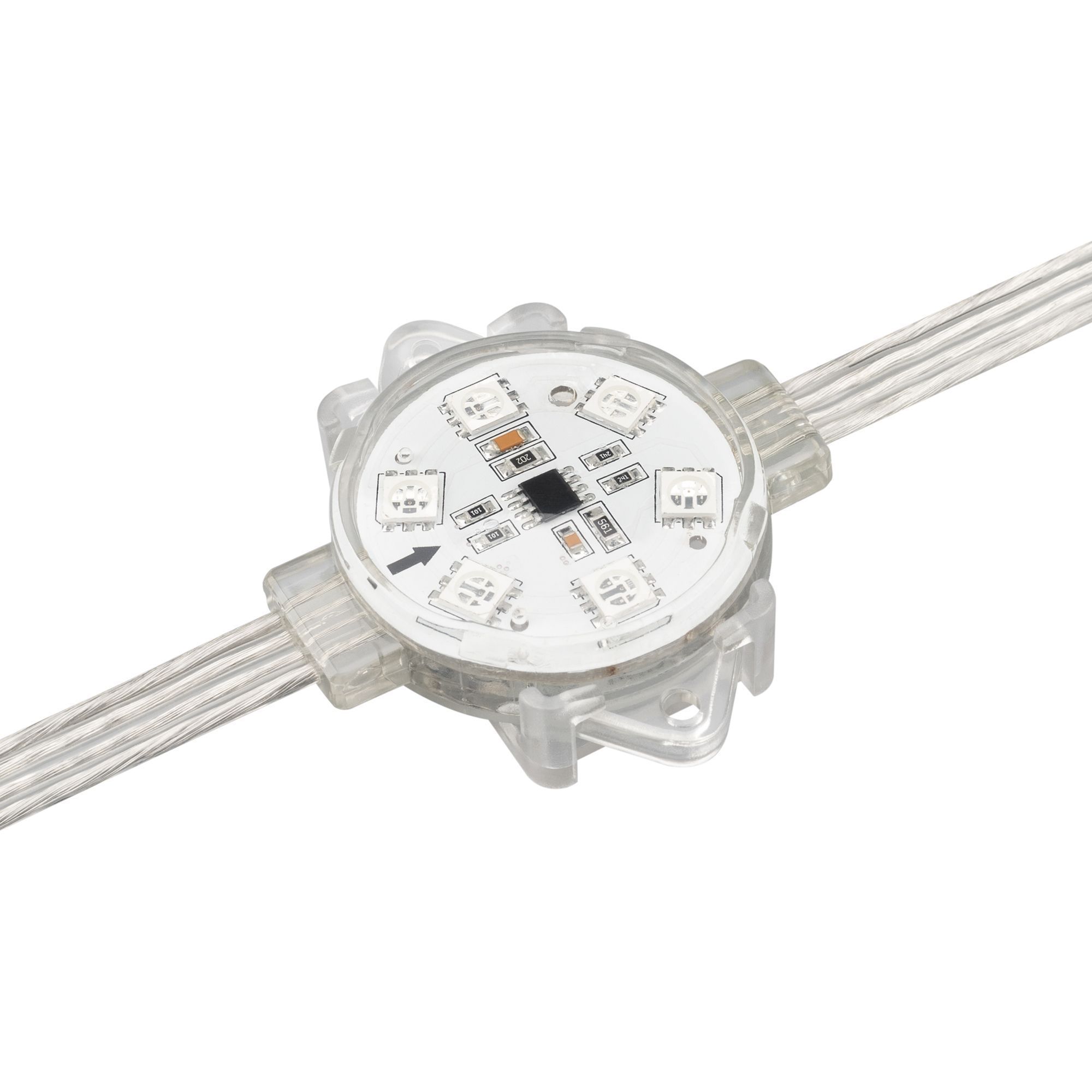 Управляемый светодиодный модуль SPI с держателем, RGB, микросхема RT16703, напряжение 24 В, мощность 1.5 Вт, 6 светодиодов SMD 5060, угол 120°. Создание медиафасадов. Функция обхода битого пикселя. 20 шт на проводе, расстояние между центрами модулей 240 мм, длина провода между модулями 200 мм. IP 68. Размер Ø40×11.2 мм. Гарантия 3 года. В комплекте инжектор питания. Заказать товар 029379 вы можете в Москве по телефону 8 (495) 212-26-01.