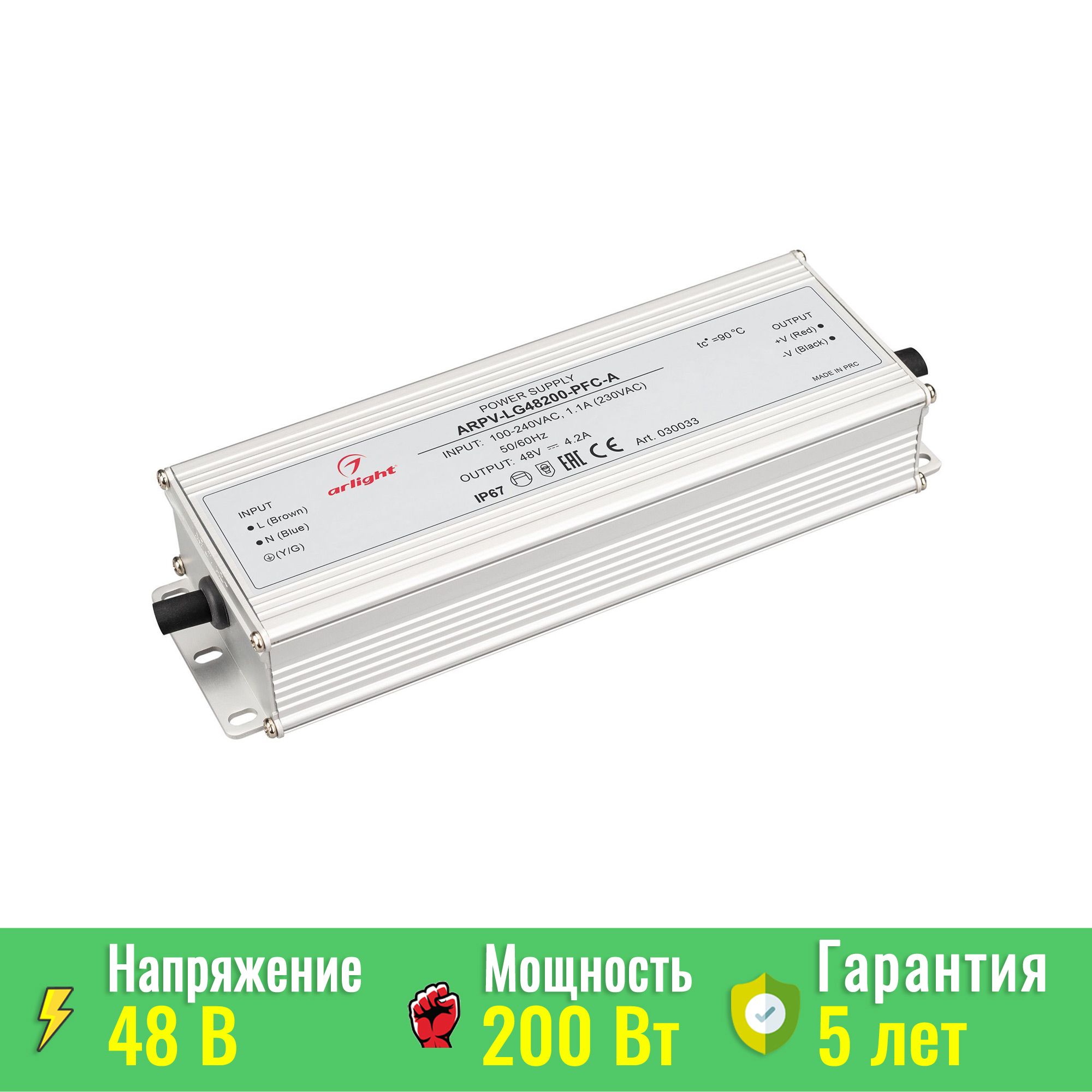 Блок питания ARPV-LG48200-PFC-A (48V, 4.2A, 200W) (Arlight, IP67 Металл) Arlight 030033