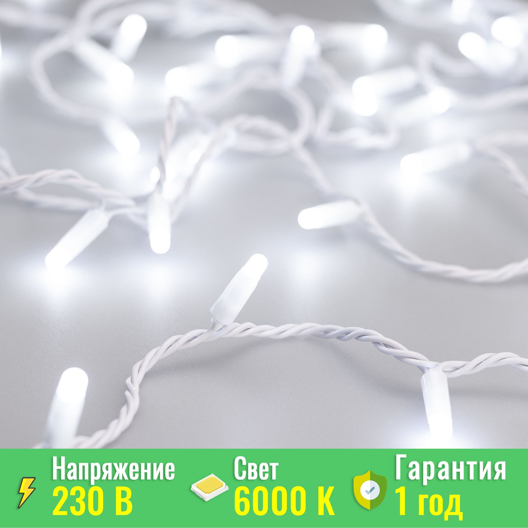Светодиодная нить Classic. Размер 10000 мм. Цвет свечения БЕЛЫЙ (6000 К). 100 светодиодов размером 7 мм с эффектом медленного мерцания каждого светодиода с мягким световым рисунком (выпуклая молочно-белая линза). Провод белый, ПВХ. Питание 230 В, Мощность 7 Вт, защита IP65, применение в помещении и на улице под навесом. Аксессуары для подключения и управления приобретаются отдельно. Заказать товар 031648 вы можете в Москве по телефону 8 (495) 212-26-01.