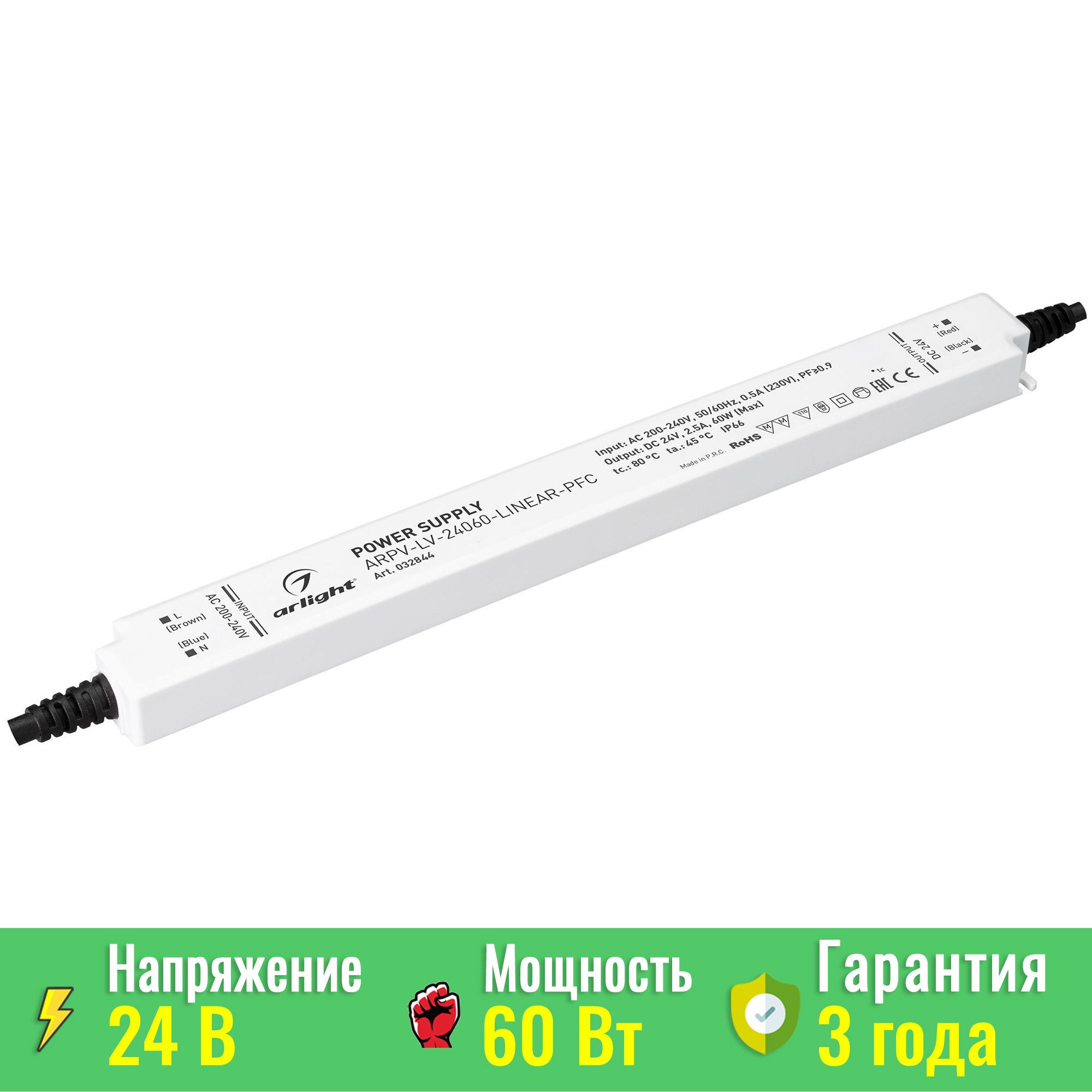 032844 Блок питания ARPV-LV-24060-LINEAR-PFC (24V, 2.5A, 60W) (Arlight, IP66 Пластик)