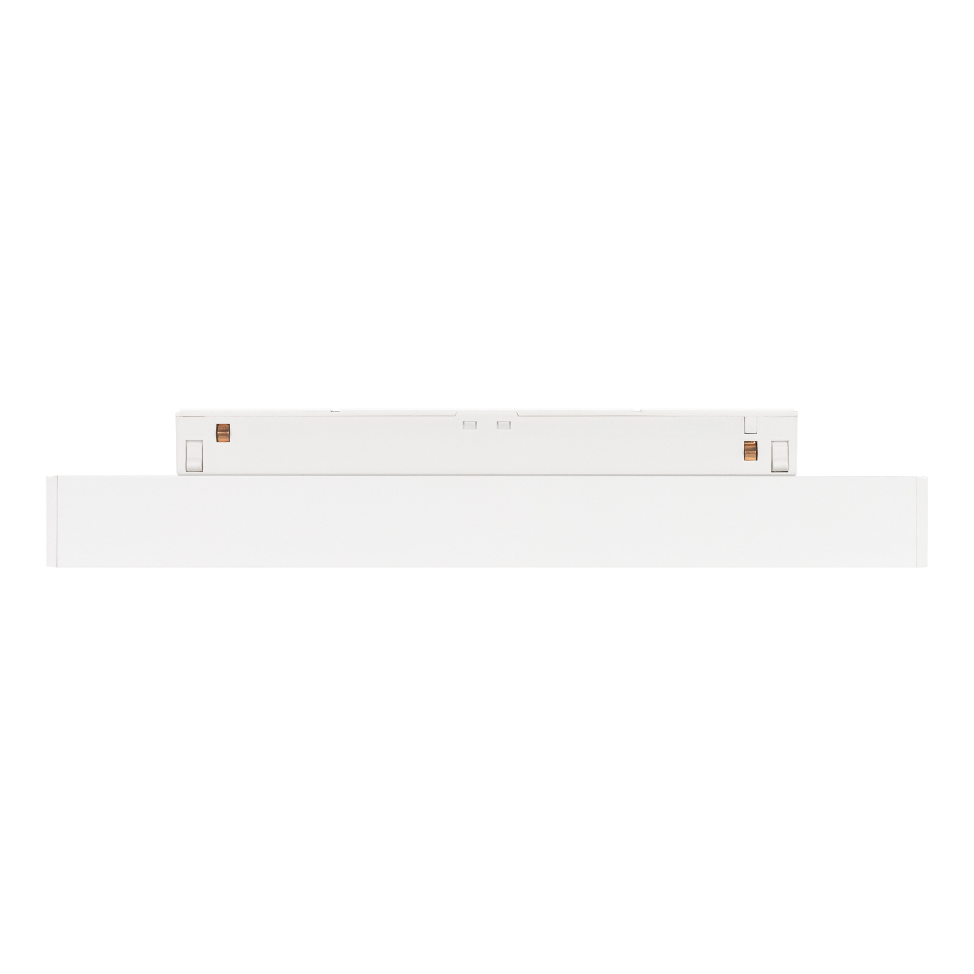 Корпус светильника выполнен из прочного металла и покрыт белым цветом, что придаёт ему современный и эстетичный вид. Он быстро и надежно крепится на трек с помощью магнитов и механических фиксаторов, что обеспечивает простоту установки и демонтажа. Система исполнения IP20 защищает светильник от пыли, что делает его подходящим для использования внутри помещений, исключая прямой контакт с влагой.