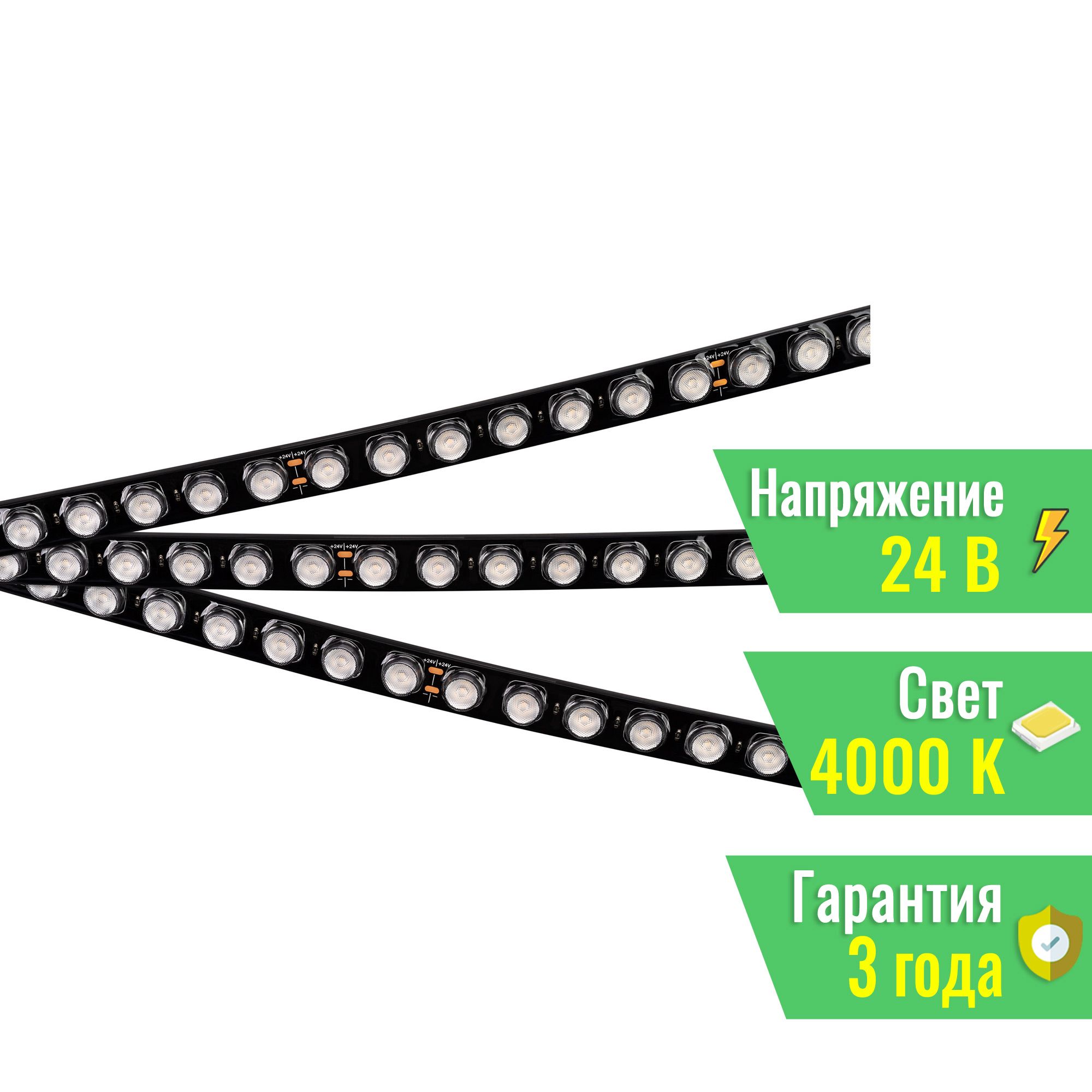 Лента оборудована светодиодами SMD 2835, расположенными на черной плате шириной 20 мм. Светодиоды обеспечены вторичной оптикой — специальными линзами, которые фокусируют свет. Такая оптика позволяет добиваться направленного освещения, что особенно подходит для заливающей подсветки стен и фасадов.