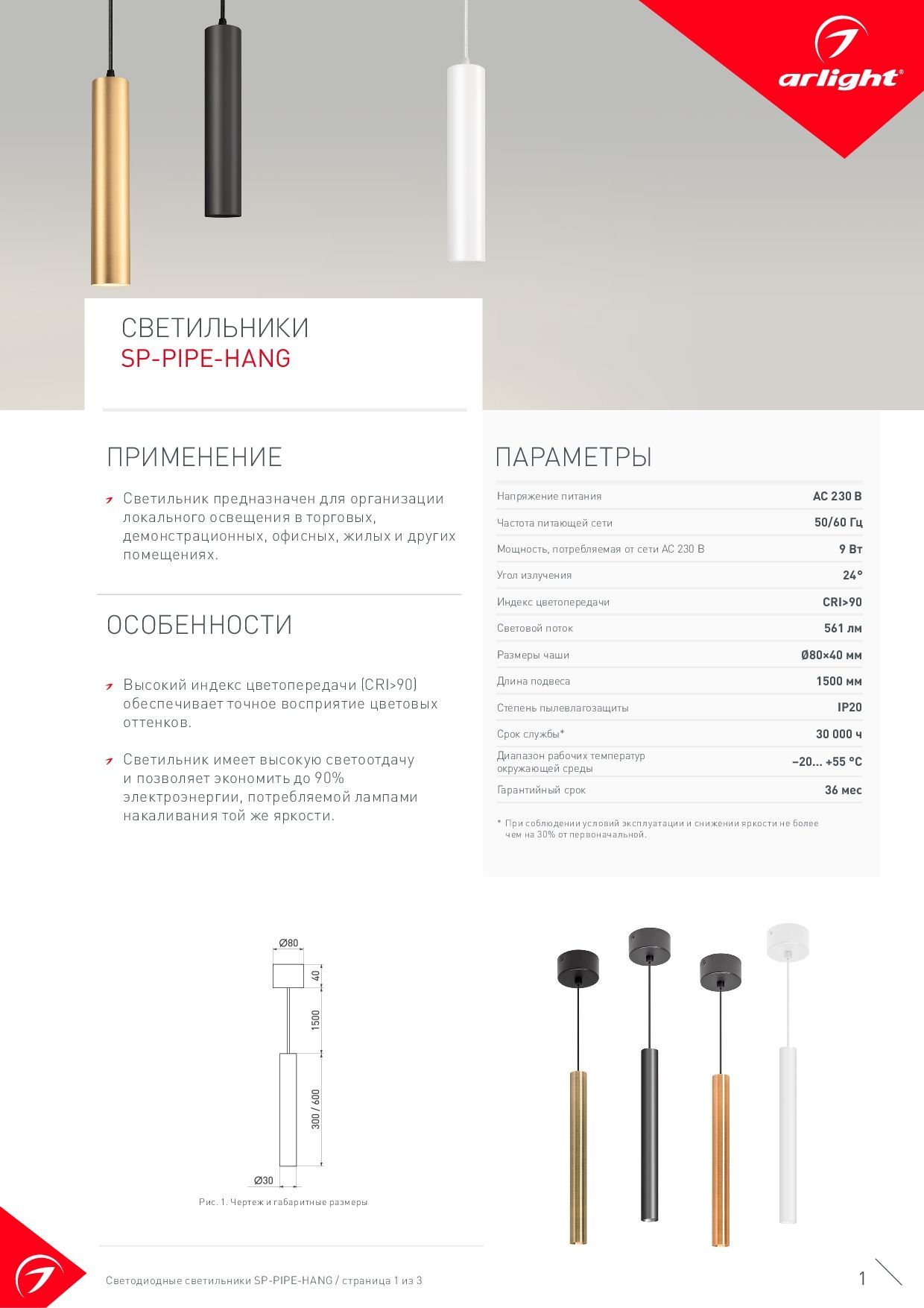 Подвесной светильник Arlight SP-PIPE-HANG-L300-R30-9W Warm3000 — Идеальное Освещение для Вашего Интерьера