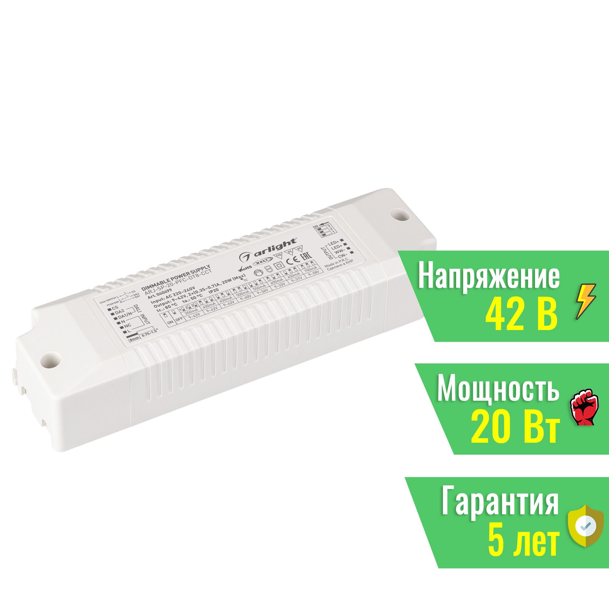 Блок питания ARJ-SP-20-PFC-DT8-ССT (20W, 9-42V, 0.35-0.7А) (Arlight, IP20 Пластик) Arlight 040499