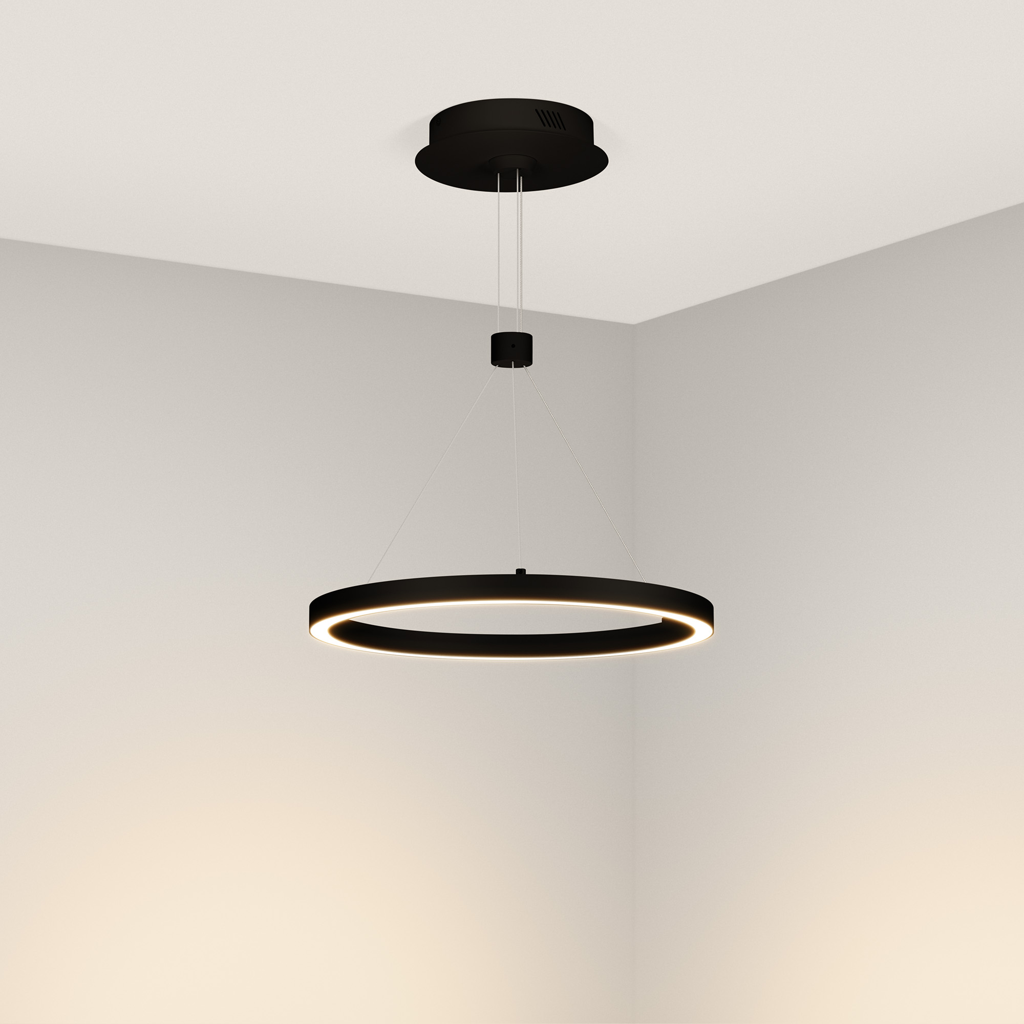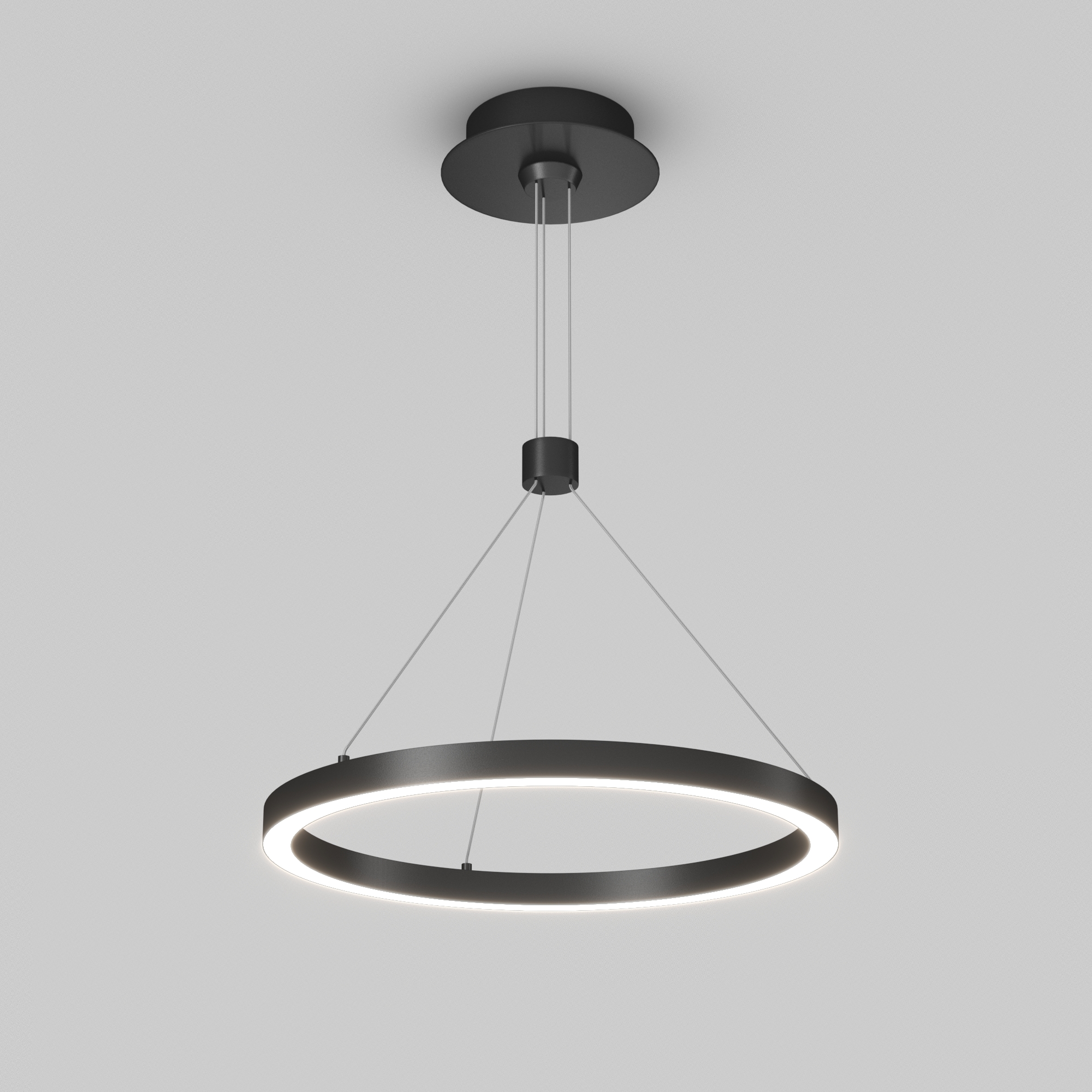 - Подвесной монтаж позволяет регулировать длину подвеса до 1200 мм, что обеспечивает легкость в адаптации под высоту потолка.