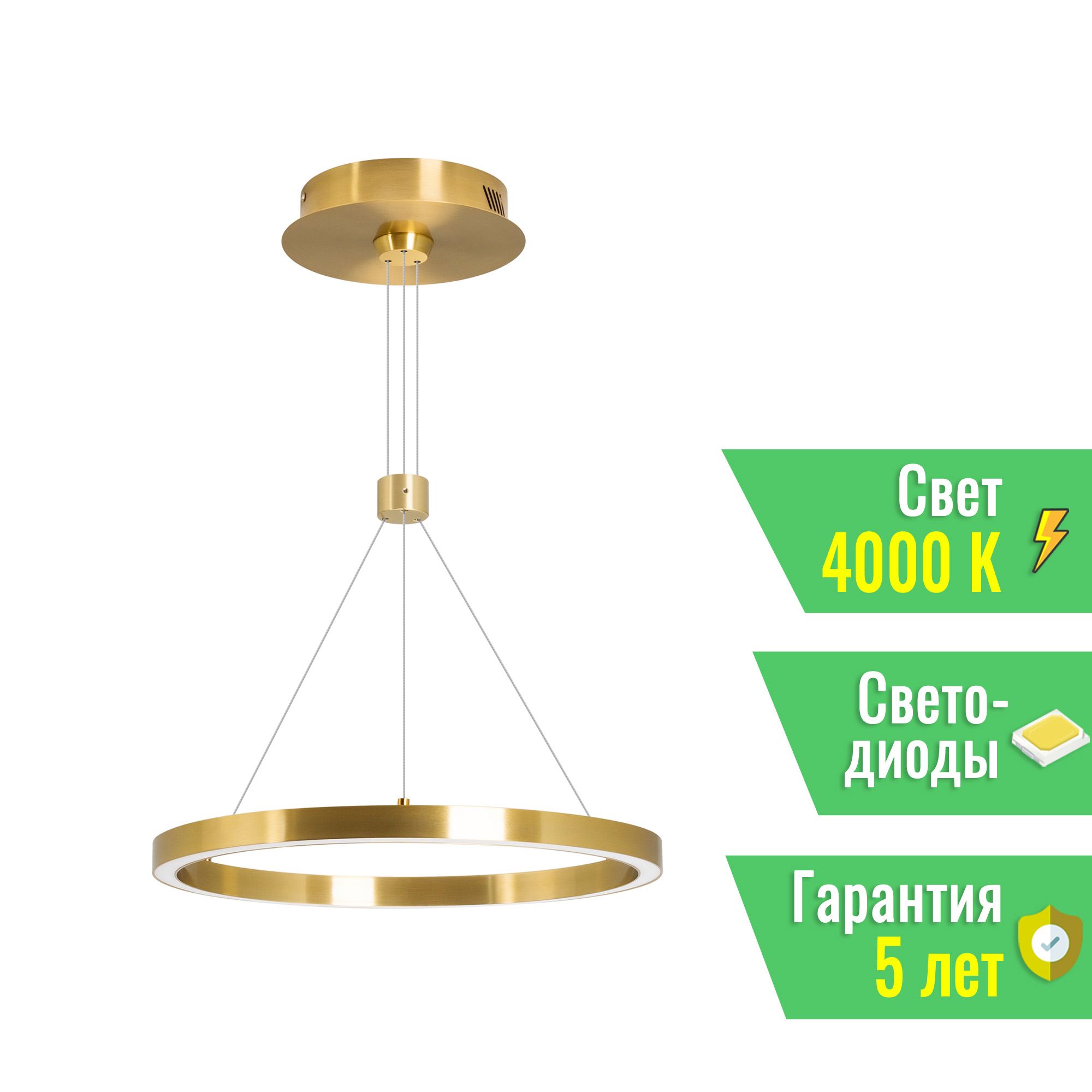 Подвесной светильник. Мощность 36 Вт, св. поток 2050 лм, 57 лм/Вт, дневной 4000 K, CRI>90, угол 120°, напряжение питания 230 В. Золотистый круглый корпус из алюминия, экран силикон, степень защиты IP20. Размер: диаметр 600 мм, высота 25 мм, ширина профиля 25 мм, размер чаши: диаметр 170 мм, высота 40 мм. Монтаж подвесной, длина подвеса 1200мм. Драйвер 33-40 В, 900 мА. Пульсация <5%. Заказать товар 046243 вы можете в Москве по телефону 8 (495) 212-26-01.