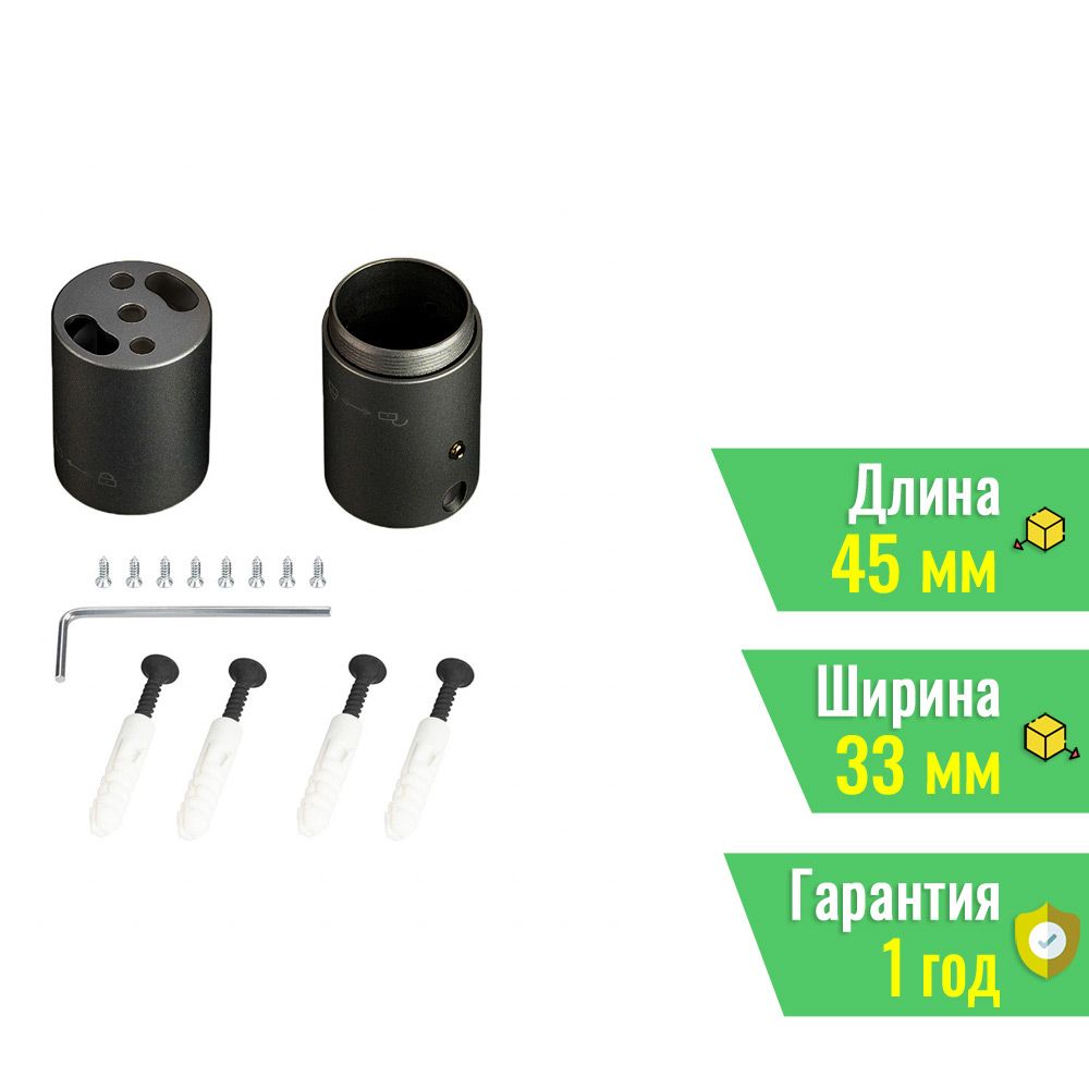 - Габариты крепления: длина 45 мм, ширина 33 мм, высота 33 мм, что обеспечивает компактность и незаметность конструкции.
