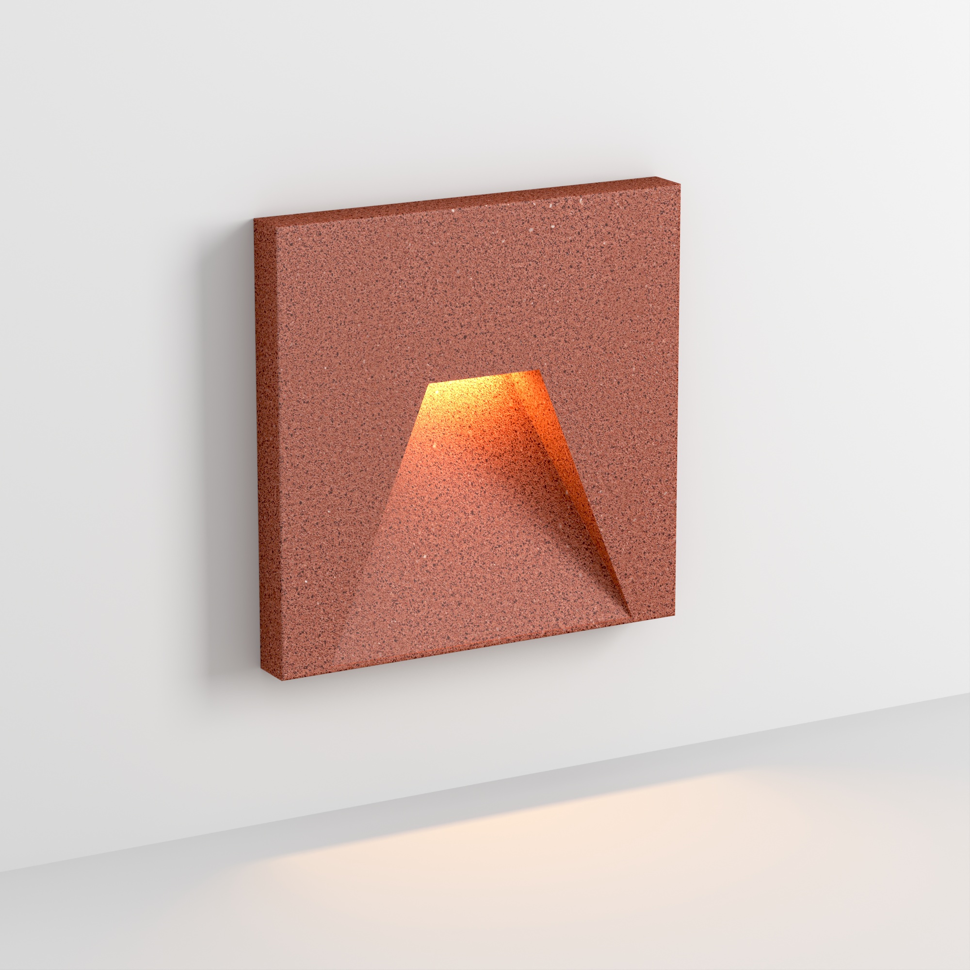 Светодиодный встраиваемый квадратный светильник для стен, лестниц. Мощность 3Вт, световой поток 80 лм, теплый 3000К, угол 75x30°, CRI>80, напряжение 230 В. Квадратный корпус из бетона темно-красного цвета и алюминия. Степень защиты IP65. Питание AC230V, мощность 3Вт. Размеры LхWхH 100х100x76 мм. Драйвер встроенный, пульсация <0.5%. Заказать товар 051052 вы можете в Москве по телефону 8 (495) 212-26-01.