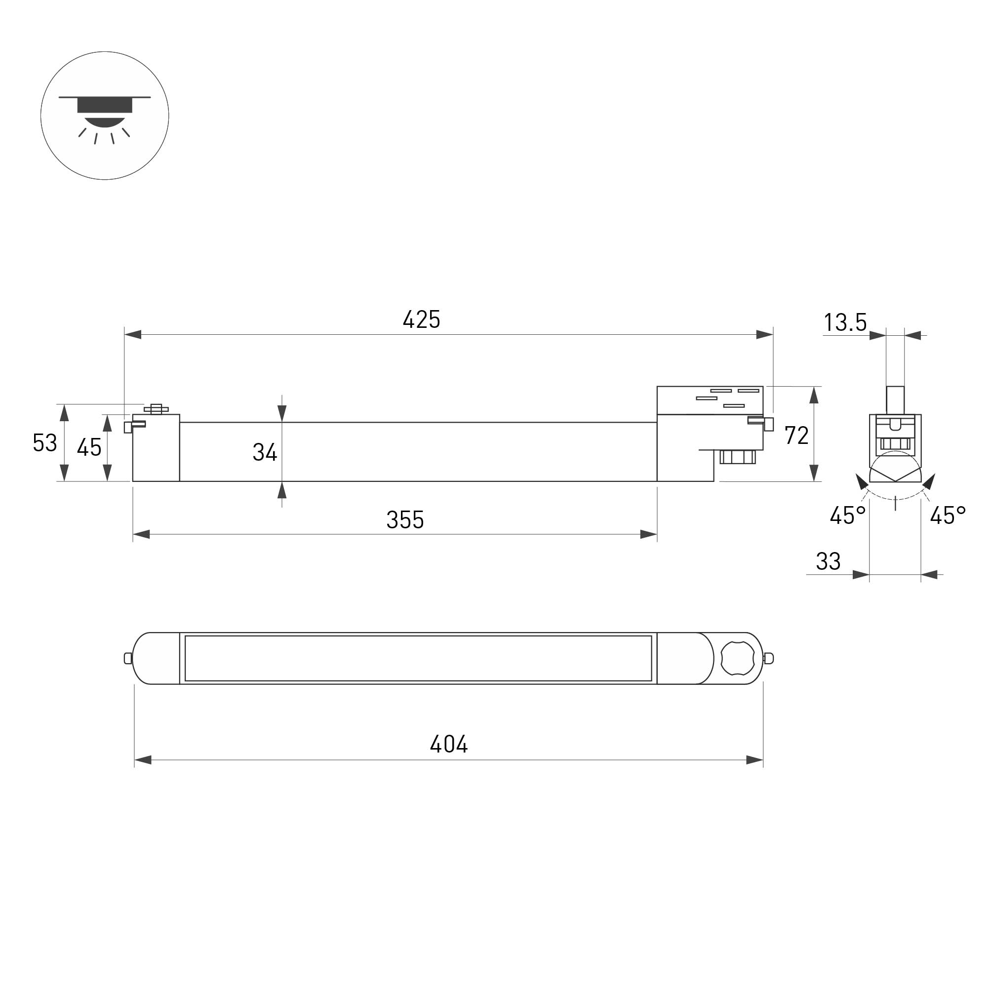 Светильник подвесной для треков/шин 4 провода. Угол поворота светильника 90° (45°+45°). Мощность 10 Вт, св. поток 800 лм, световая отдача 80 лм/Вт, дневной 4000 K, CRI>90, угол 100°, напряжение питания 230 В. Черный корпус из алюминия, материал рассеивателя PC, степень защиты IP20. Размер: длина 404 мм, ширина 33 мм, высота 45 мм. Монтаж на трек 3-фазный. Драйвер встроенный, пульсация <1%. Заказать товар 051924 вы можете в Москве по телефону 8 (495) 212-26-01.