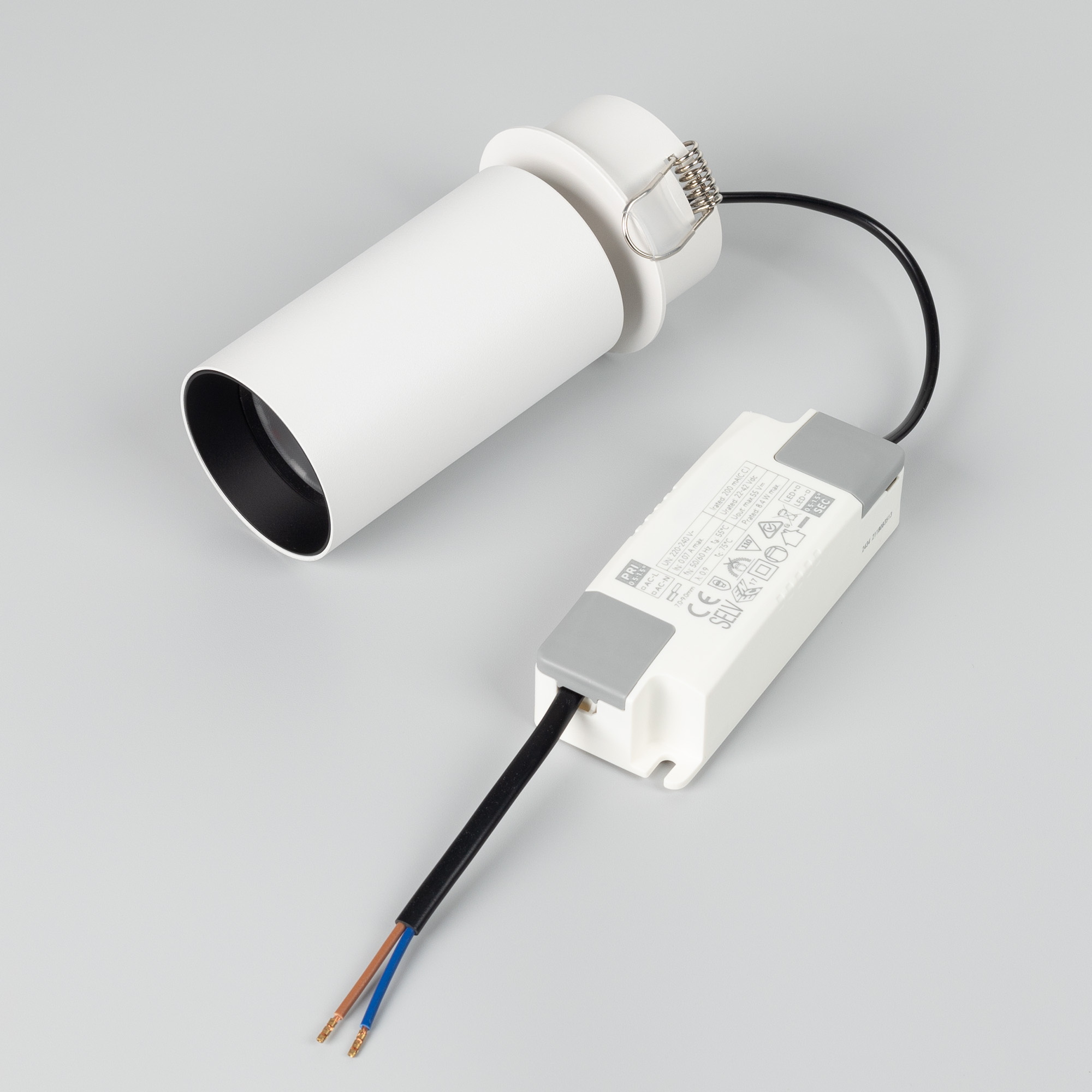 Светильник Arlight SP-GABI-BUILT-FLAP-R50-9W Warm3000 оснащен встроенным драйвером, который в комплекте поставляется с диапазоном входного напряжения 22-42 В, и выходным током 200 мА. Это обеспечивает удобное подключение к сети 230 В.