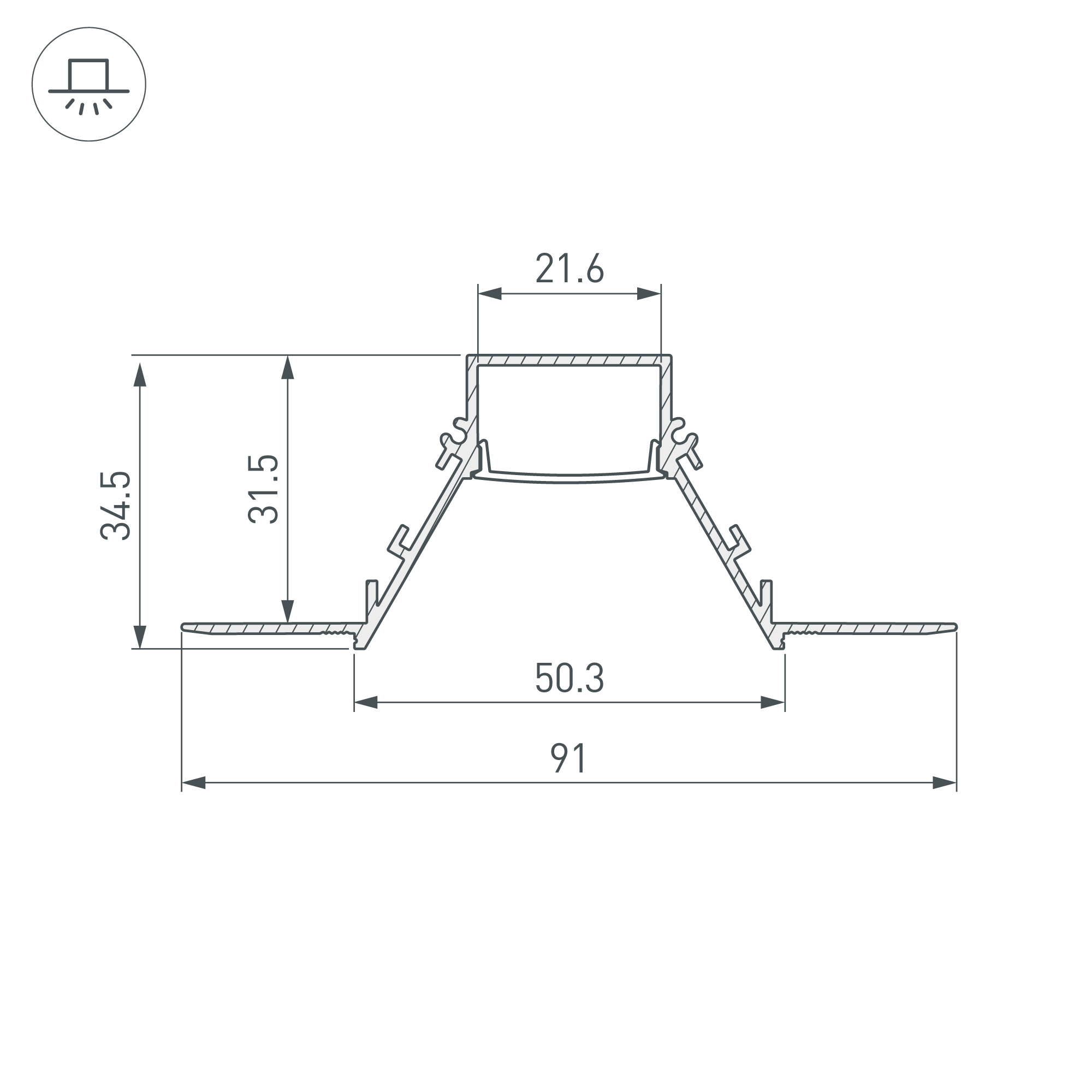 Профиль предназначен для скрытой установки под строительную отделку. Наличие специального фланца позволяет интегрировать его в гипсокартонные конструкции, стены и другие поверхности с возможностью формирования безупречного перехода между профилем и отделочным материалом. Такой способ монтажа создает впечатление, что свет появляется ниоткуда, обеспечивая элегантный и современный световой эффект.