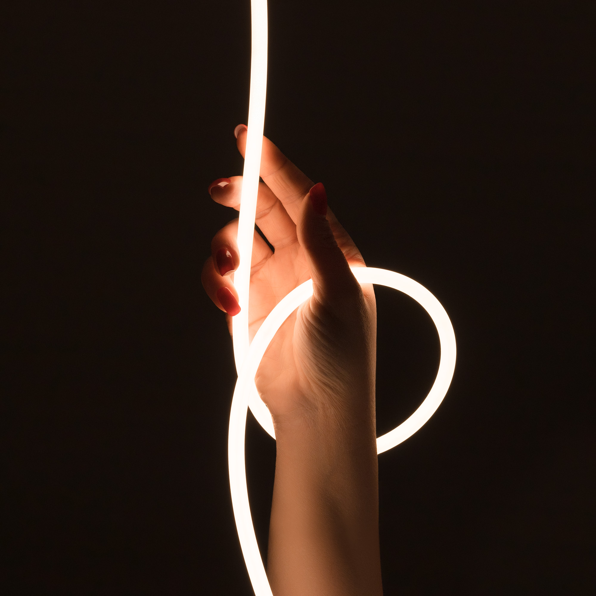 Лента имеет гибкую конструкцию с минимальным радиусом изгиба 45 мм и допускает изгиб в обе стороны. Благодаря этому она идеально подходит для сложных и нестандартных дизайнерских решений. Также предусмотрены длинные кабели по 1 м с каждой стороны для удобной установки.