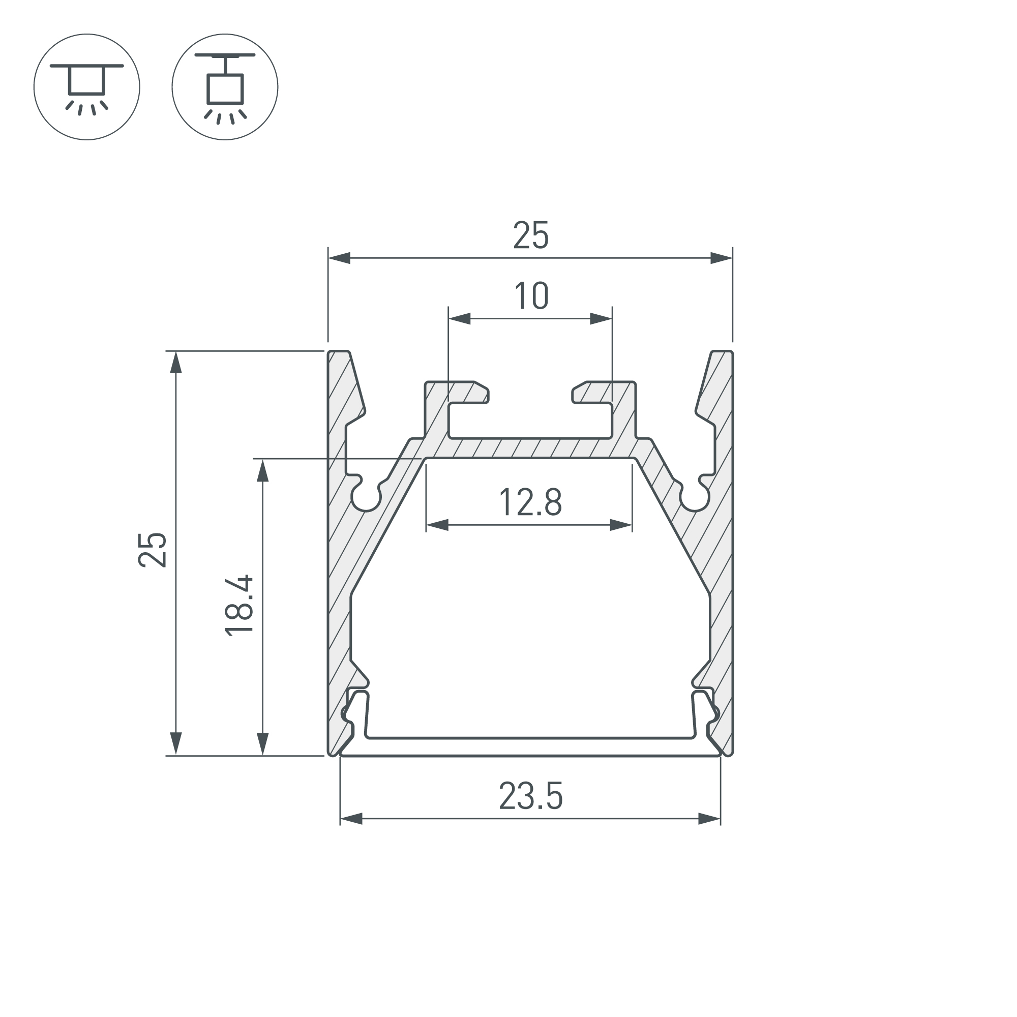 Профиль LINE-2525-2000 ANOD (Arlight, Алюминий) Arlight 053804