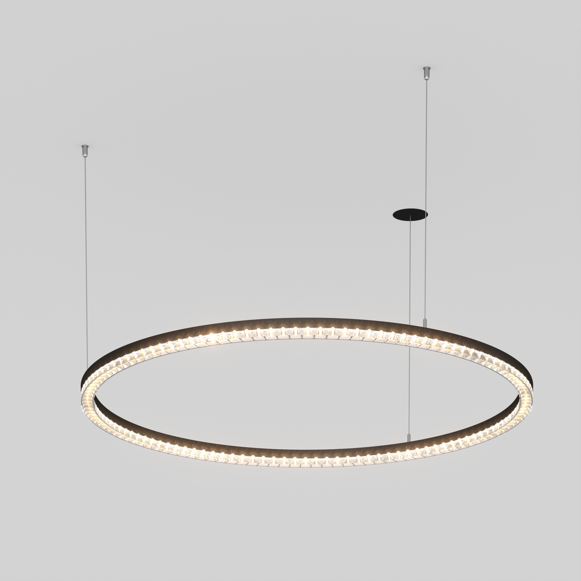 Подвесной светильник. Мощность 60 Вт, св. поток 5250 лм, 80-95 лм/Вт, дневной белый 4000 K, CRI>90, угол 45°, напряжение питания 230 В. Черный круглый корпус из алюминия, экран PMMA, степень защиты IP20. Размер: диаметр 1050 мм, высота 34 мм, ширина профиля 30 мм, размер чаши: диаметр 65 мм, высота 26 мм. Монтаж подвесной, длина подвеса 1200 мм, тип чаши встраиваемый, диаметр установочного отверстия чаши 60 мм. Драйвер (2 шт) 9-42 В, 700 мА. Пульсация < 0,3%. Заказать товар 054489 вы можете в Москве по телефону 8 (495) 212-26-01.