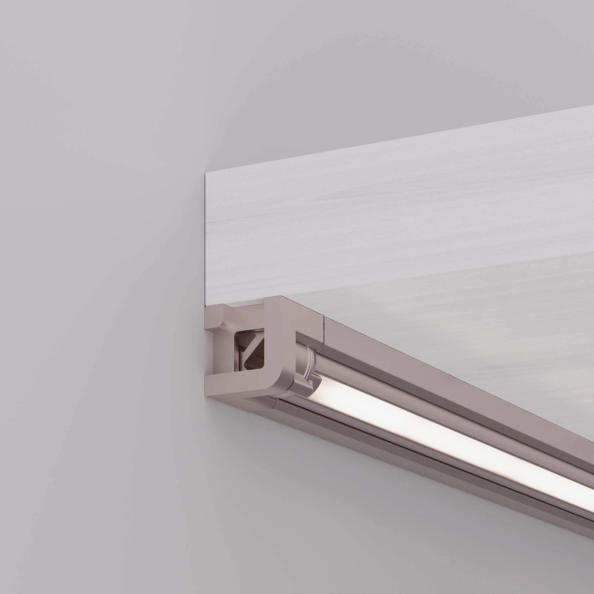 Комплект с экраном. Двухкомпонентный алюминиевый профиль для светодиодных лент и линеек. Цвет - шампань золотой. Внутренняя вставка вращается вокруг своей оси на 360 градусов. Габаритные размеры (L×W×H): 2000x10x10 мм. Ширина площадки для ленты 5,6 мм. В комплекте с матовым экраном из PMMA. Цена за комплект.