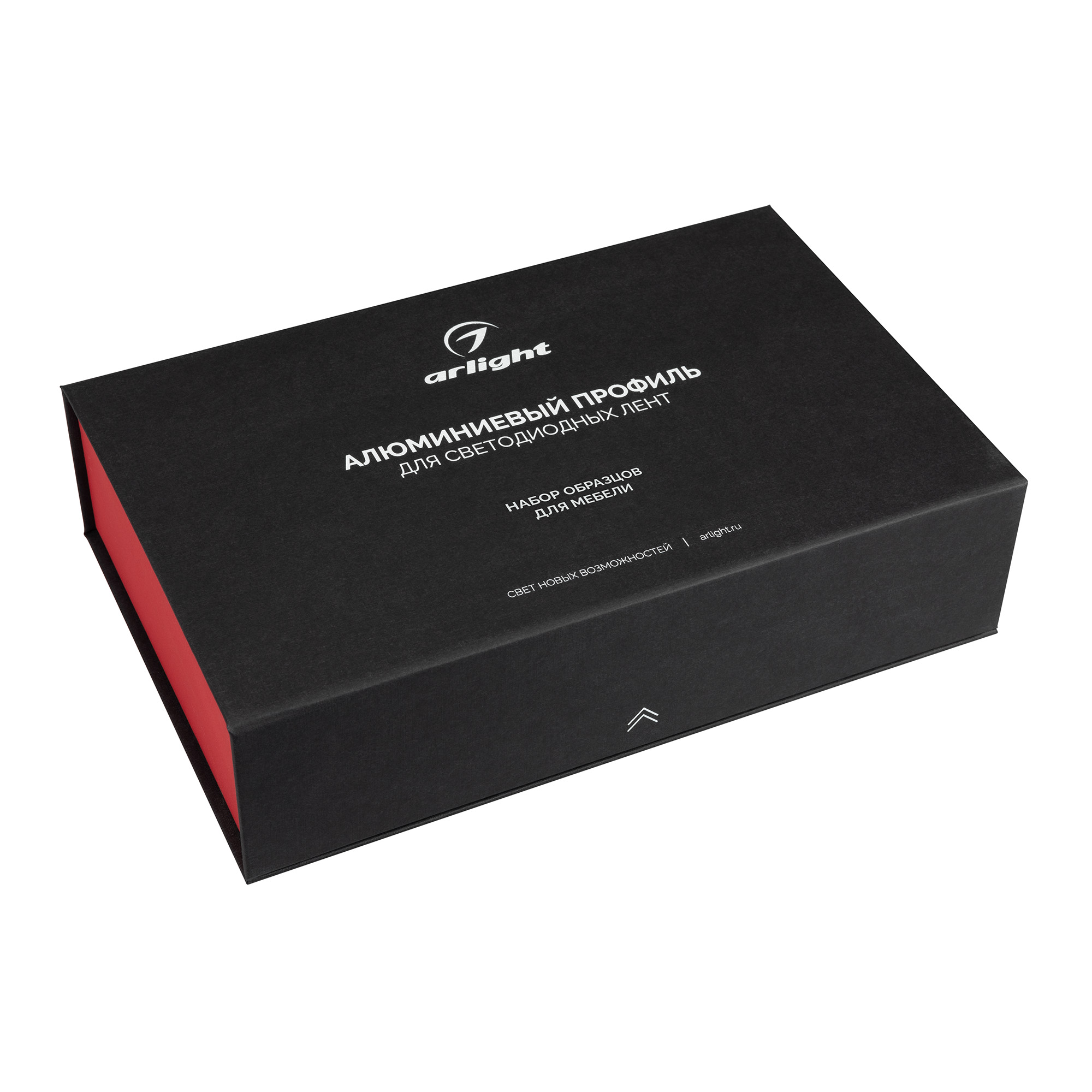 Набор образцов мебельных профилей ARLIGHT с экранами и заглушками.