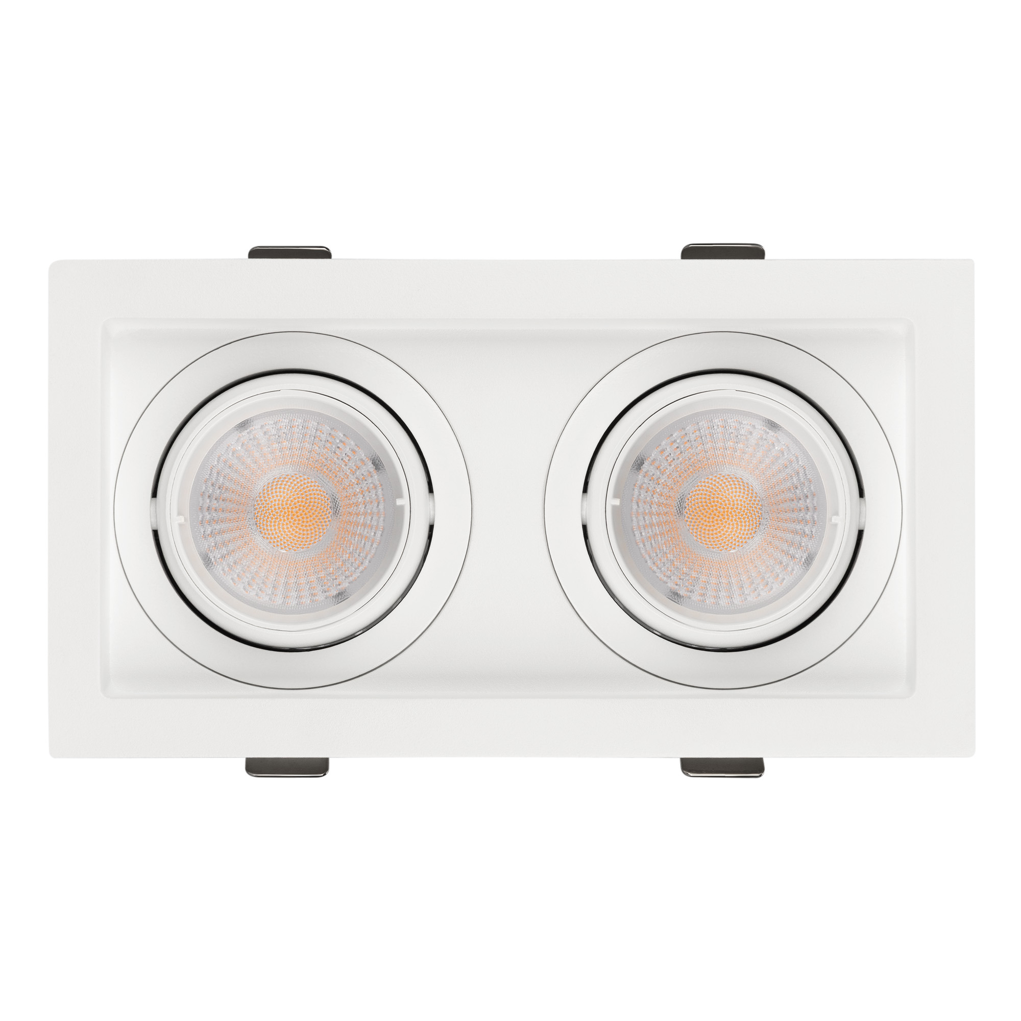 Встраиваемый карданный светильник. Мощность 2х12 Вт, св. поток 2788 лм, 116 лм/Вт, тёплый 3000 K, CRI>92, угол 40°, напряжение питания 230 В. Белый корпус из алюминия, белая вставка, степень защиты IP20. Размер: длина 170 мм, ширина 90 мм, высота 80 мм. Монтаж встраиваемый, установочное отверстие: длина 155 мм, ширина 75 мм. Драйвер 27-40 В, 300 мА, пульсация <2%. Заказать товар 057761 вы можете в Москве по телефону 8 (495) 212-26-01.
