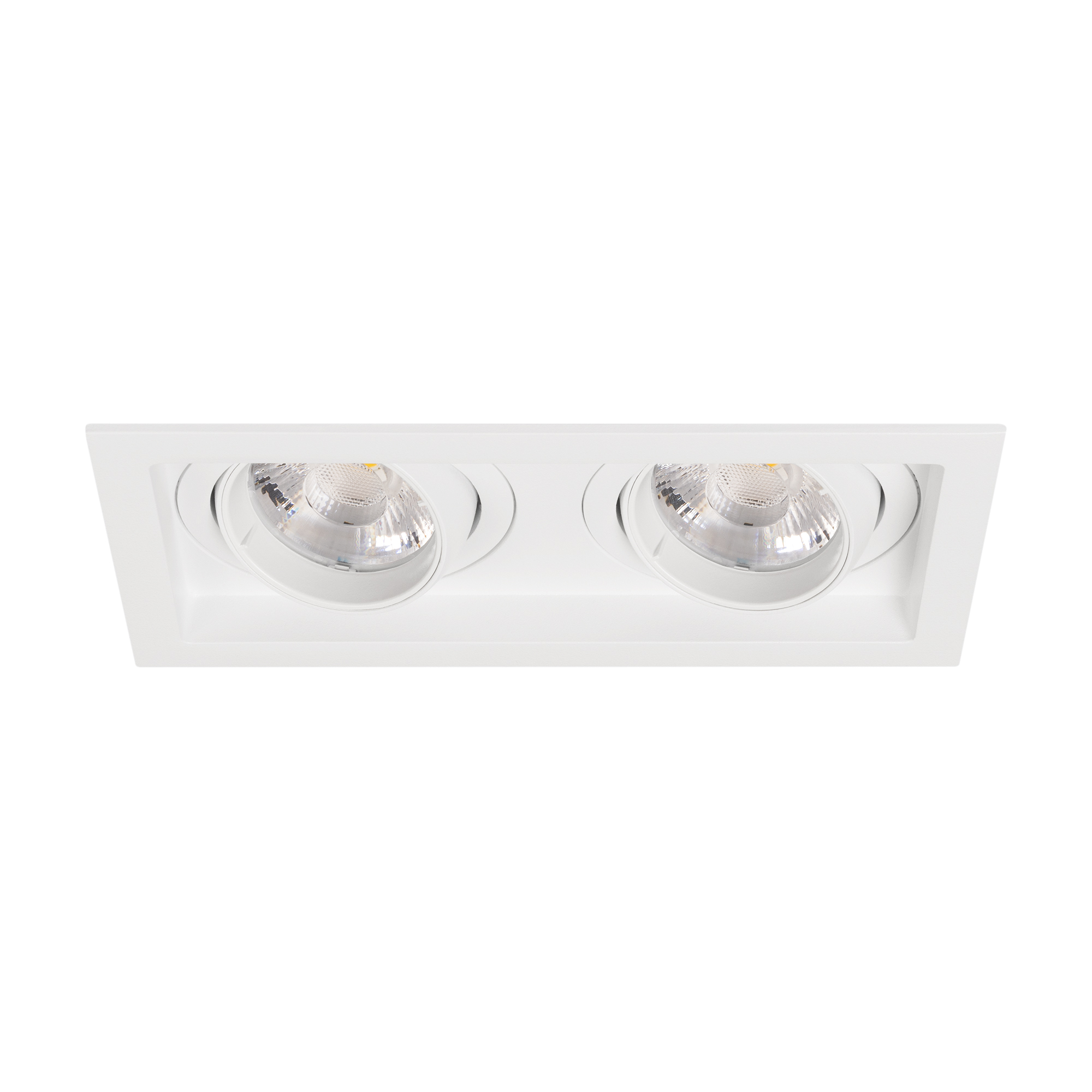 Встраиваемый карданный светильник. Мощность 2х12 Вт, св. поток 2636 лм, 109 лм/Вт, дневной 4000 K, CRI>92, угол 20°, напряжение питания 230 В. Белый корпус из алюминия, белая вставка, степень защиты IP20. Размер: длина 170 мм, ширина 90 мм, высота 80 мм. Монтаж встраиваемый, установочное отверстие: длина 155 мм, ширина 75 мм. Драйвер 27-40 В, 300 мА, пульсация <2%. Заказать товар 057770 вы можете в Москве по телефону 8 (495) 212-26-01.