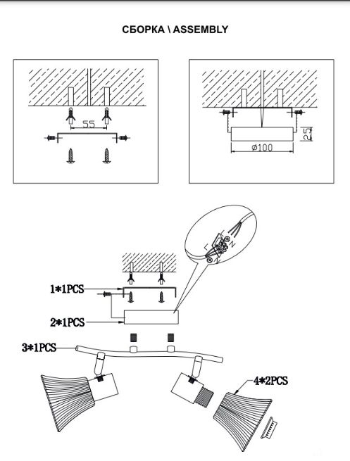- Тип товара Настенно-потолочные светильники, Поворотные светильники, Споты