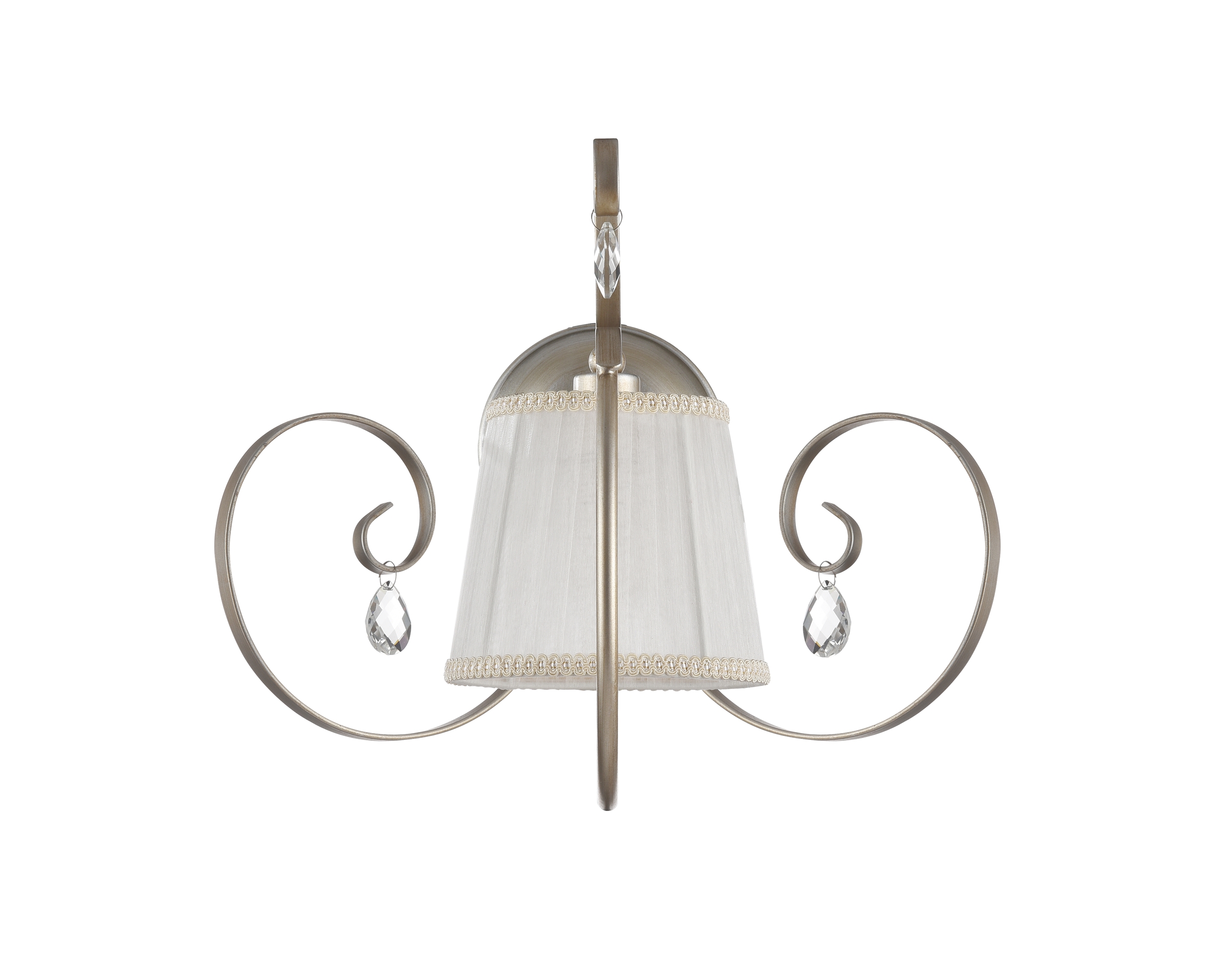 Бра выполнено в классическом стиле с изящными линиями и продуманными деталями. Металлическая арматура кремового цвета с золотыми элементами придает светильнику роскошный и благородный вид. Основание светильника декорировано стеклянным элементом, а изящные завитки рожка украшены изысканными подвесками, которые красиво преломляют свет.