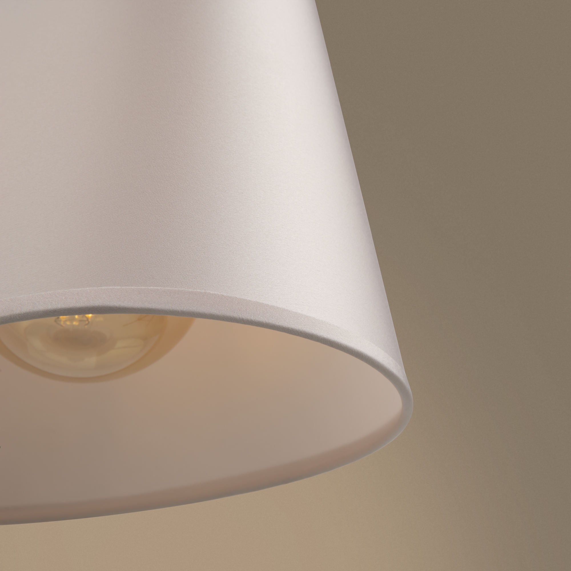 Благодаря текстильному абажуру светильник создает приятное рассеянное освещение, идеально подходящее для гостиных, спален, столовых или коридоров, где требуется комфортный свет без резких теней.