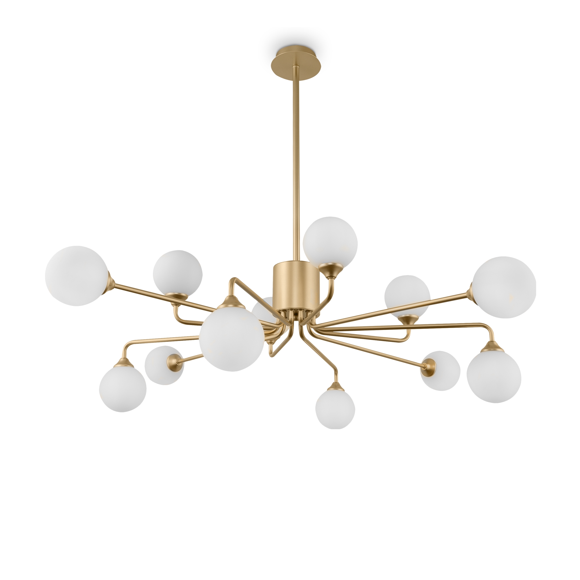 Люстра Freya Alexis FR5120PL-12G – это стильное и функциональное решение для современного интерьера. Сочетание металлической арматуры матового золотого цвета и белых стеклянных плафонов-сфер создает гармоничную композицию, которая будет радовать вас долгие годы.