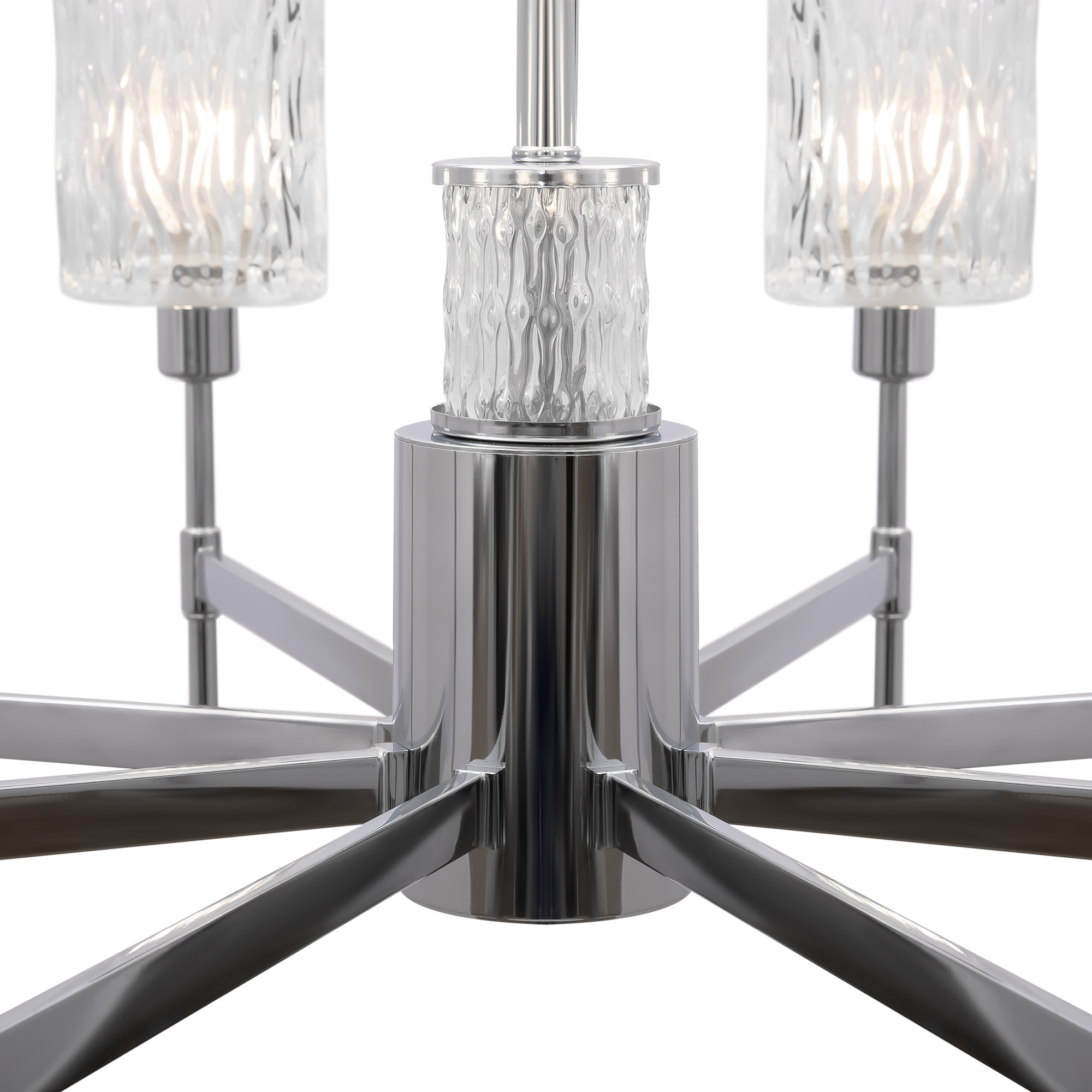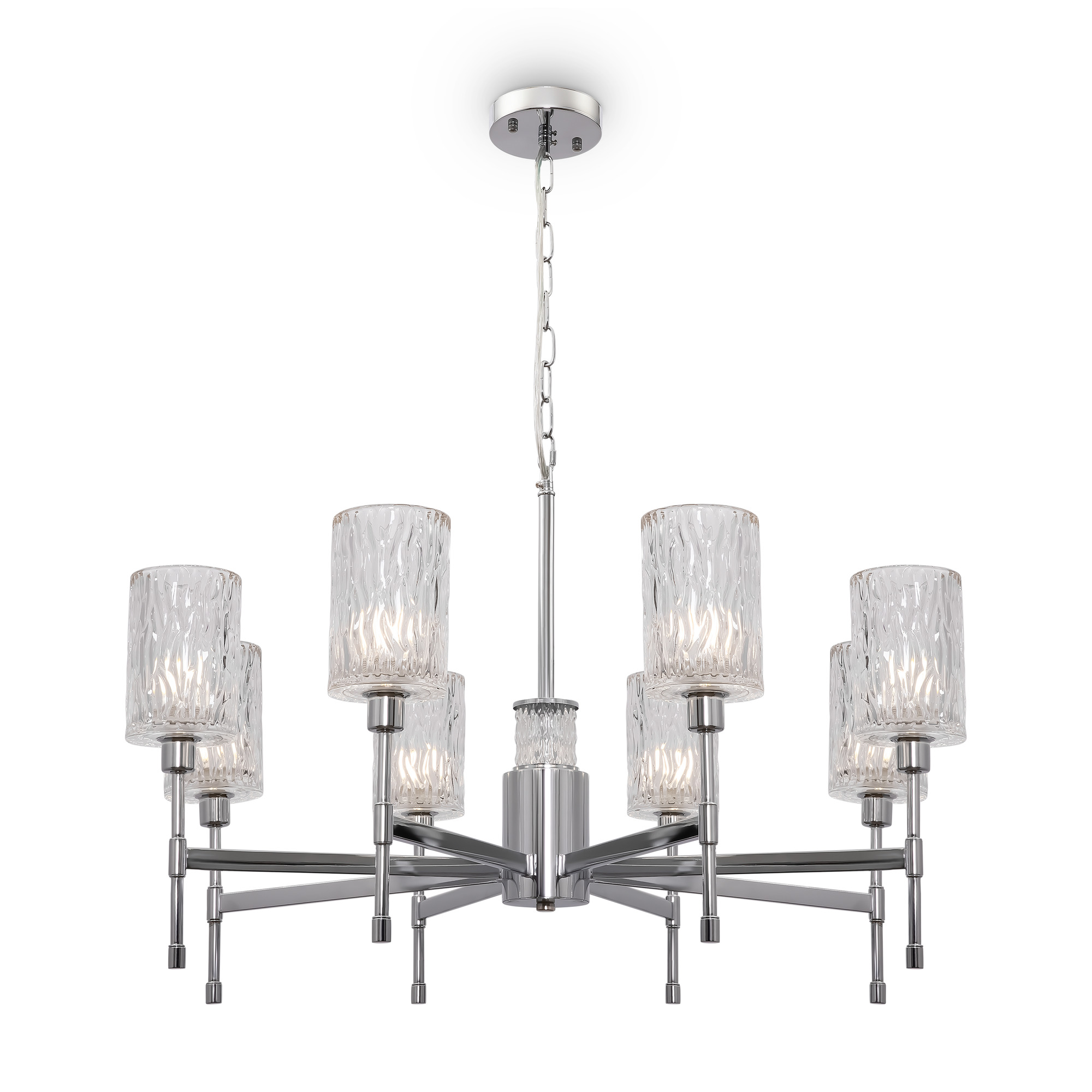 Люстра Freya FR5133PL-08CH выполнена в классическом стиле с элементами современной эстетики. Основу составляет изящная хромированная металлическая арматура, которая эффектно отражает свет и придает модели благородный блеск. Восемь плафонов цилиндрической формы изготовлены из фактурного прозрачного стекла, создающего красивые световые переливы и игру света при включении светильника.