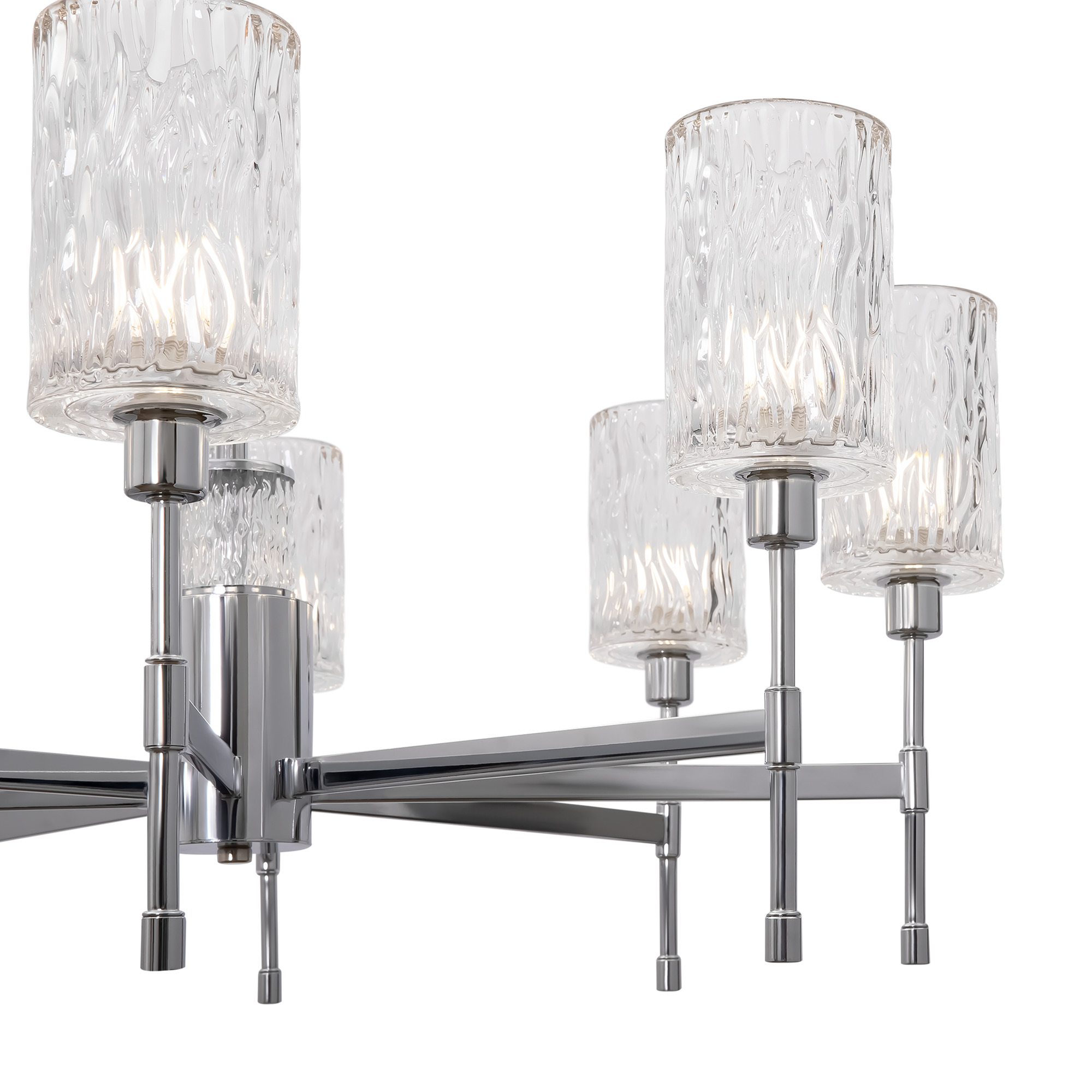 Каждый из восьми плафонов имеет цилиндрическую форму с размерами: высота 150 мм, диаметр 100 мм. Прозрачное фактурное стекло плафонов обеспечивает равномерное рассеивание света и создает уютную атмосферу в любом помещении.