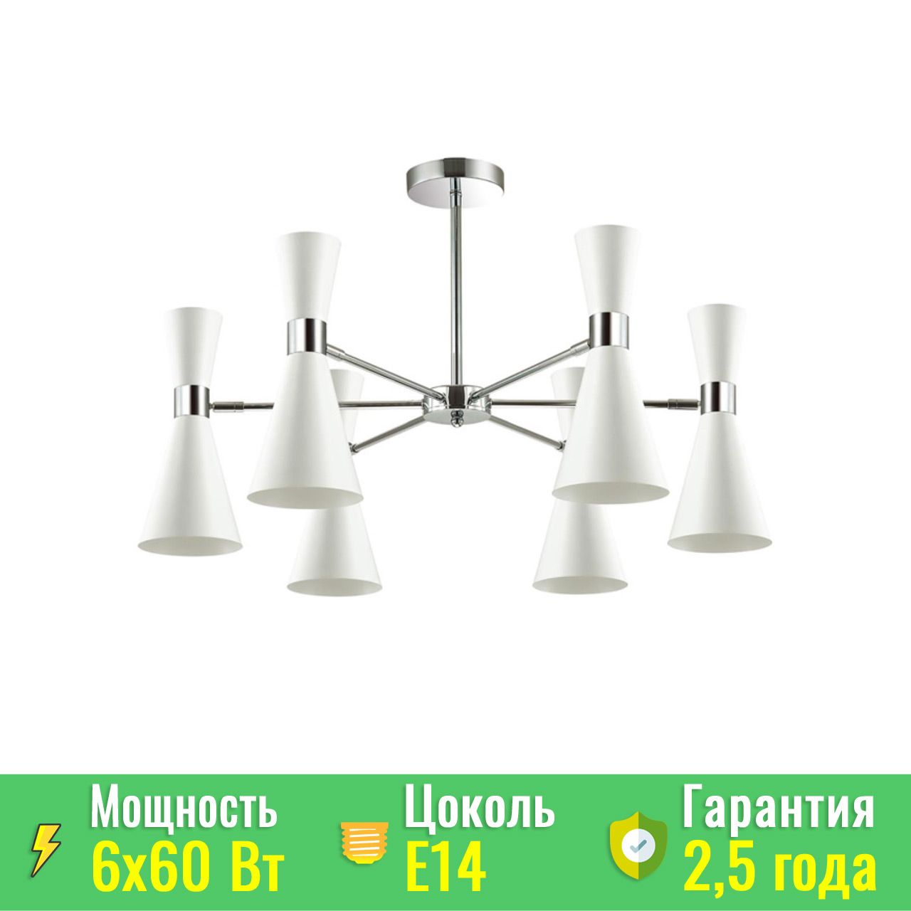 LN3661/6C 3661/6C MODERNI LN18 177 хром/матовый белый Люстра потолочная E14 6*60W 220V QUINN