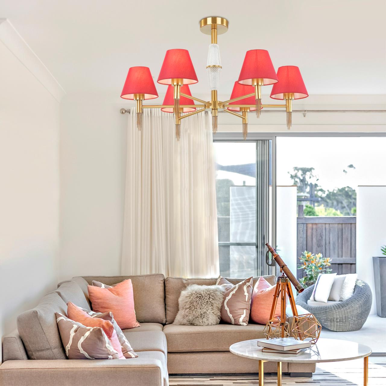 4514/6C NEOCLASSI LN20 000 античная латунь, красный Люстра потолочная E27 6*60W 220V VANESSA Lumion 4514/6C