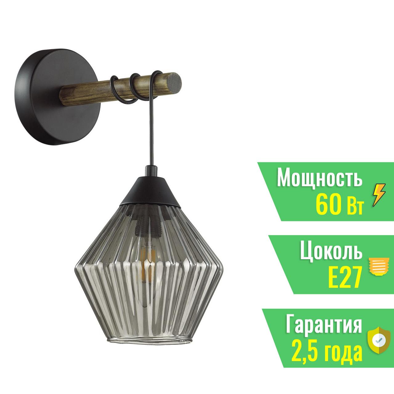 LN4564/1W 4564/1W COUNTY LN22 166 черный, дерево Бра E27 1*60W 220V JUSTINE