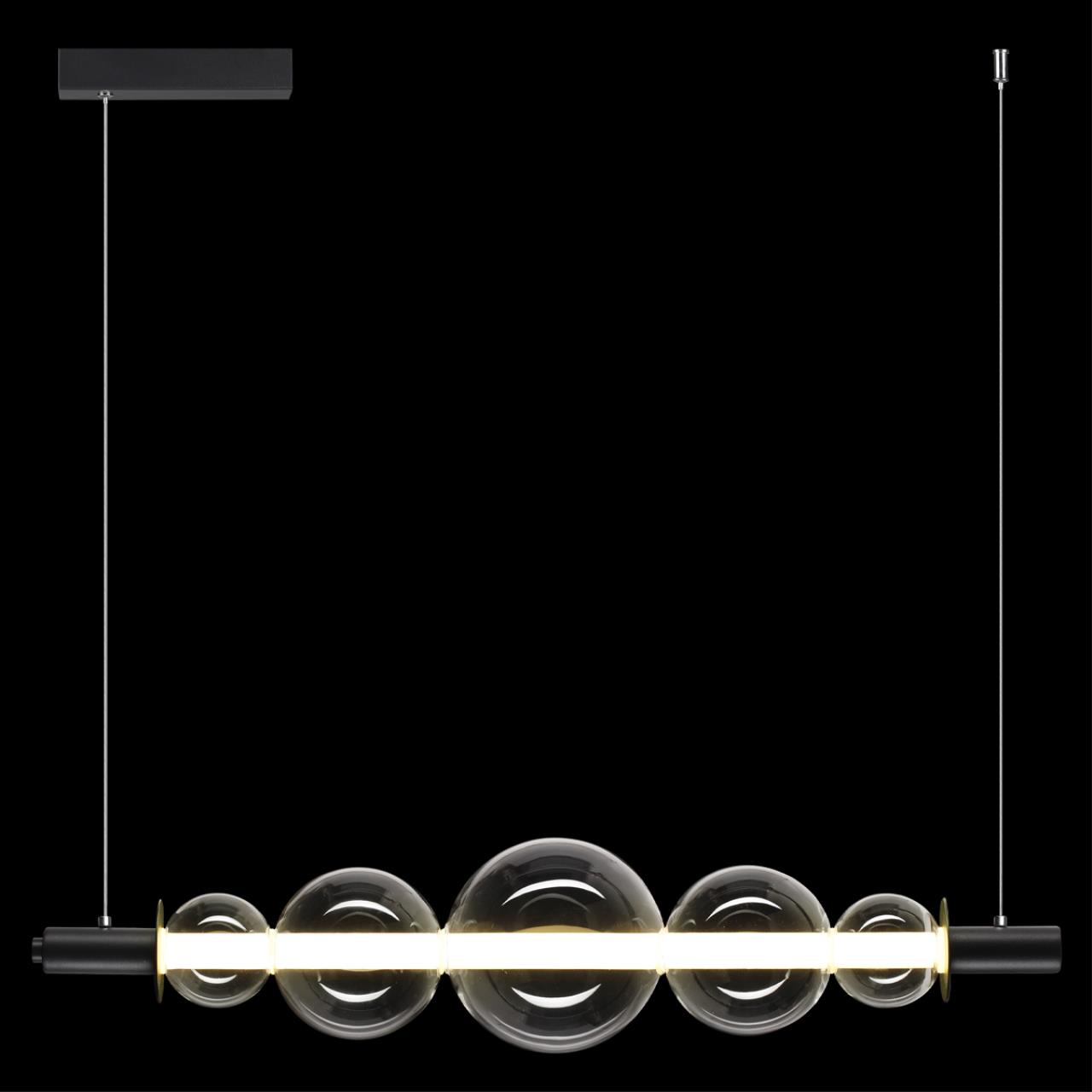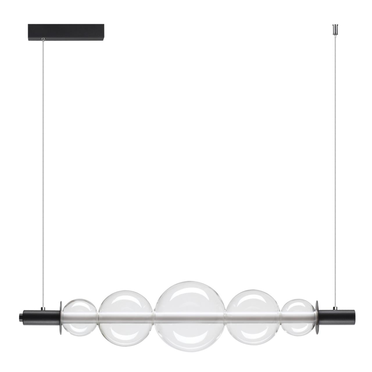 Светильник выполнен в стиле современный модерн, который характеризуется лаконичными линиями и формами. Чёрная матовая арматура элегантно контрастирует с прозрачными стеклянными плафонами, создавая стильный акцент в интерьере. Эта модель станет идеальным дополнением для гостиной, спальни, кухни, столовой или прихожей в современном стиле.