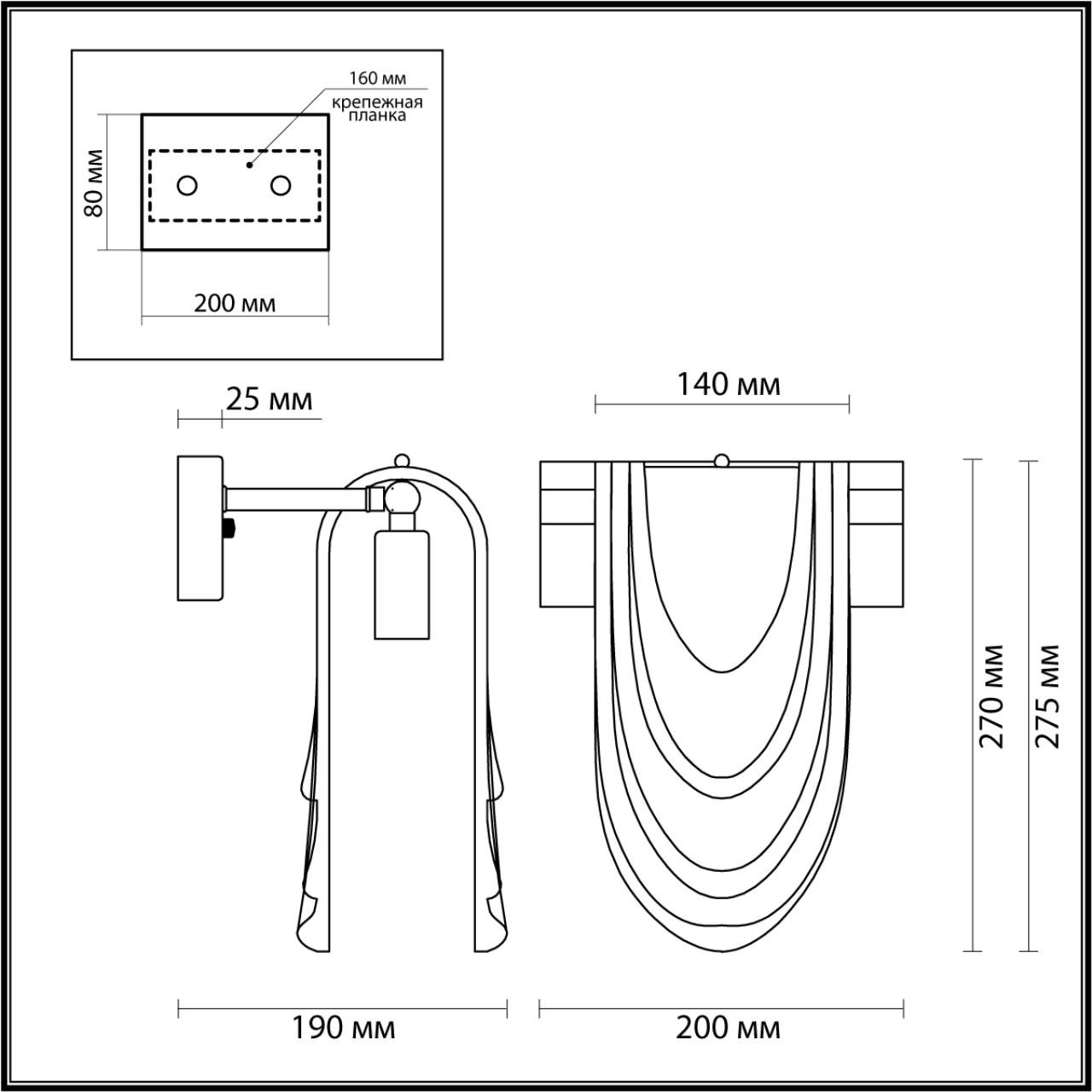 - Размеры светильника: высота 275 мм, ширина 200 мм, длина 190 мм