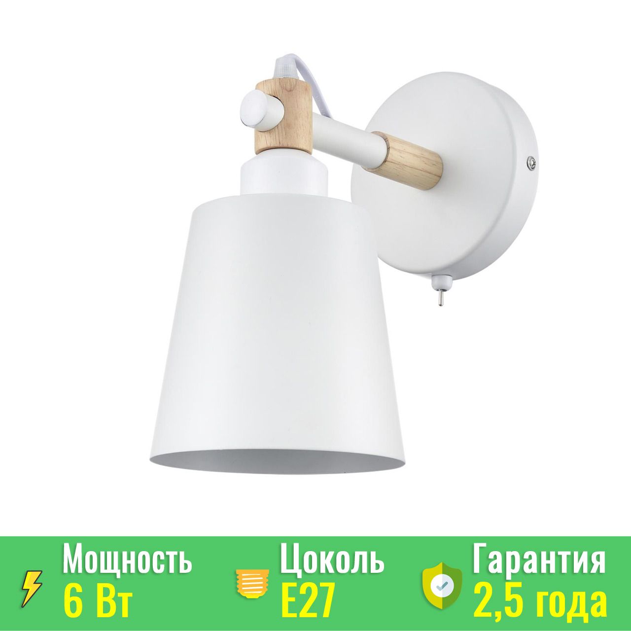 Светильник выполнен в белом цвете, который прекрасно впишется в любой интерьер и сделает помещение визуально просторнее. Особенностью модели является изысканное сочетание металла и дерева – натуральные древесные вставки бежевого цвета создают теплый акцент и подчеркивают скандинавскую стилистику изделия.