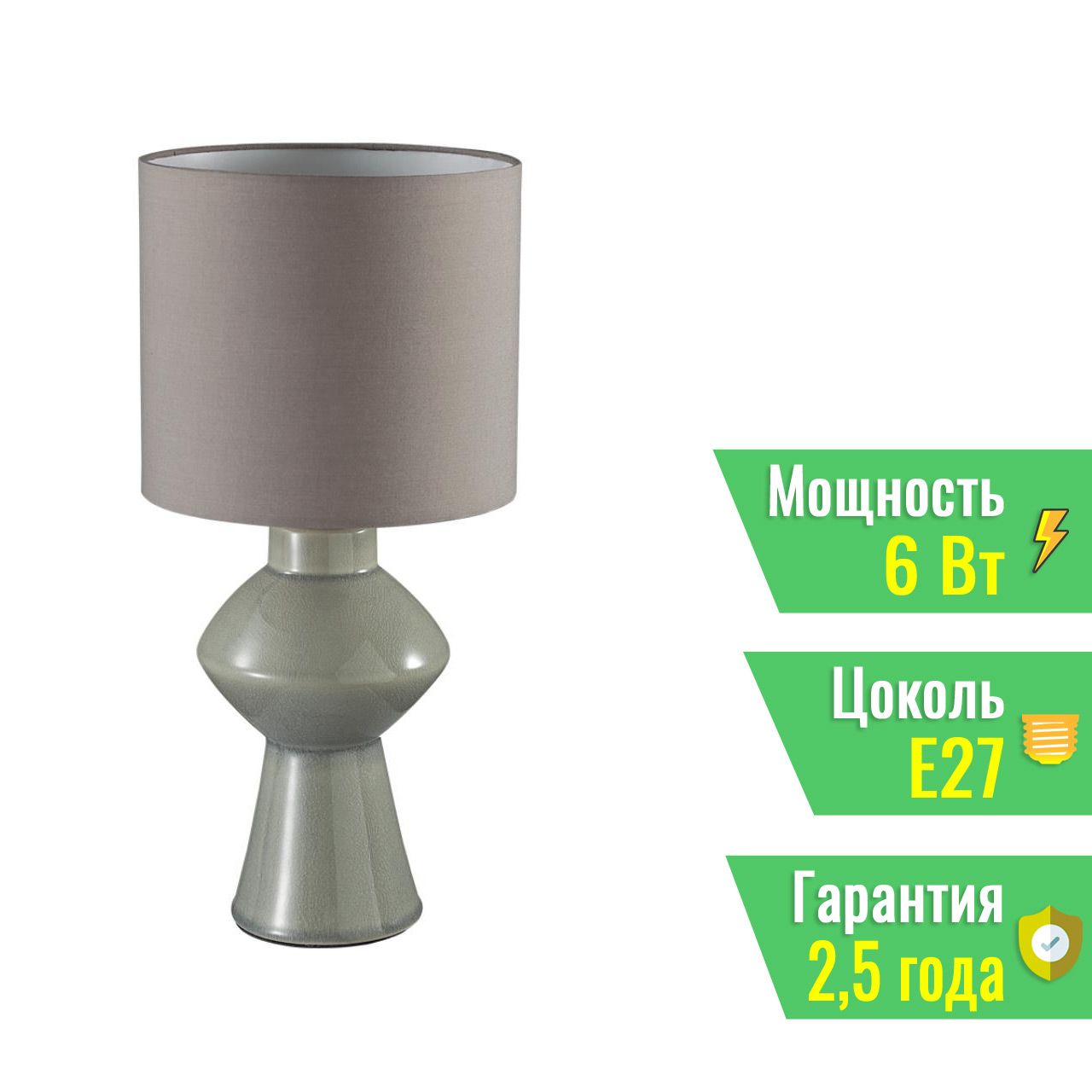 LN8129/1Т 8129/1T MODERNI LN25 000 серый, керамика/текстиль Настольная лампа E27 1*60W 220V SEGI