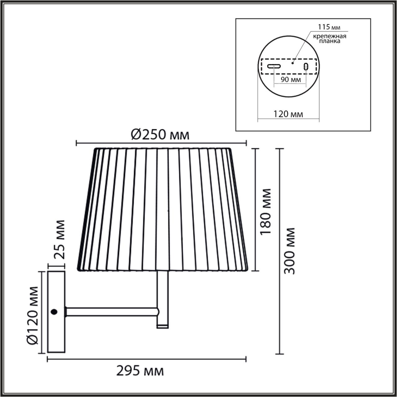 - Светильник Ширина, мм 250
