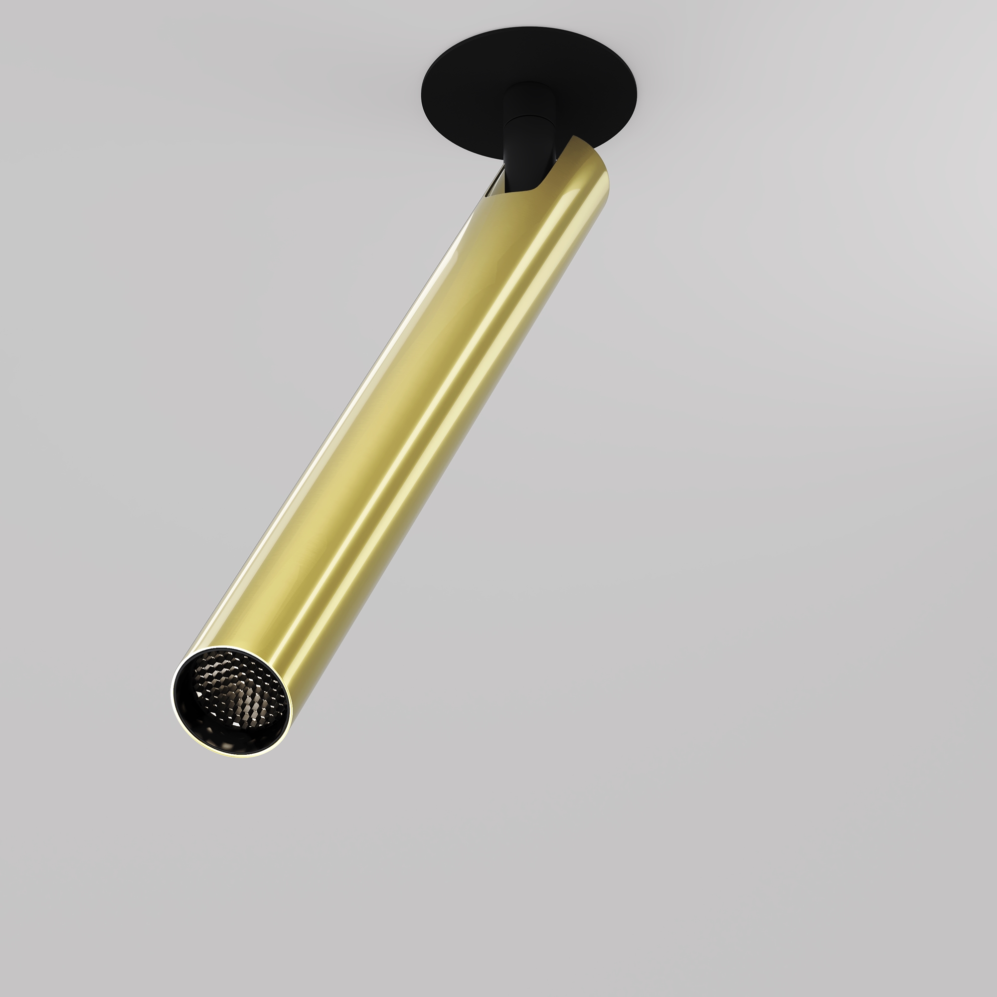 Светильник выполнен в современном стиле с комбинацией черного и латунного цветов, что делает его универсальным решением для различных интерьеров: от минималистичных до классических. Корпус изготовлен из высококачественного алюминия, обеспечивающего долговечность и надежность конструкции.