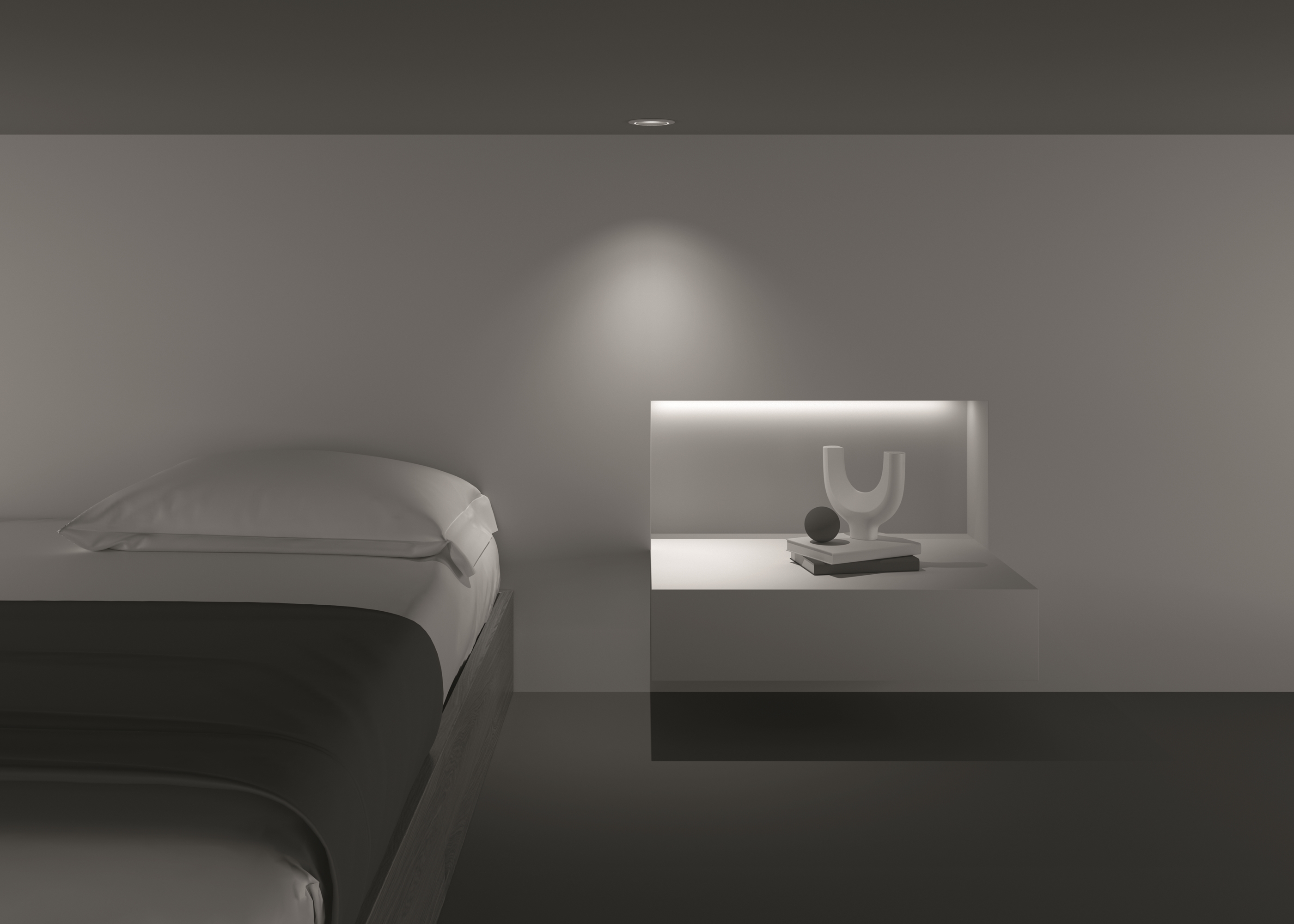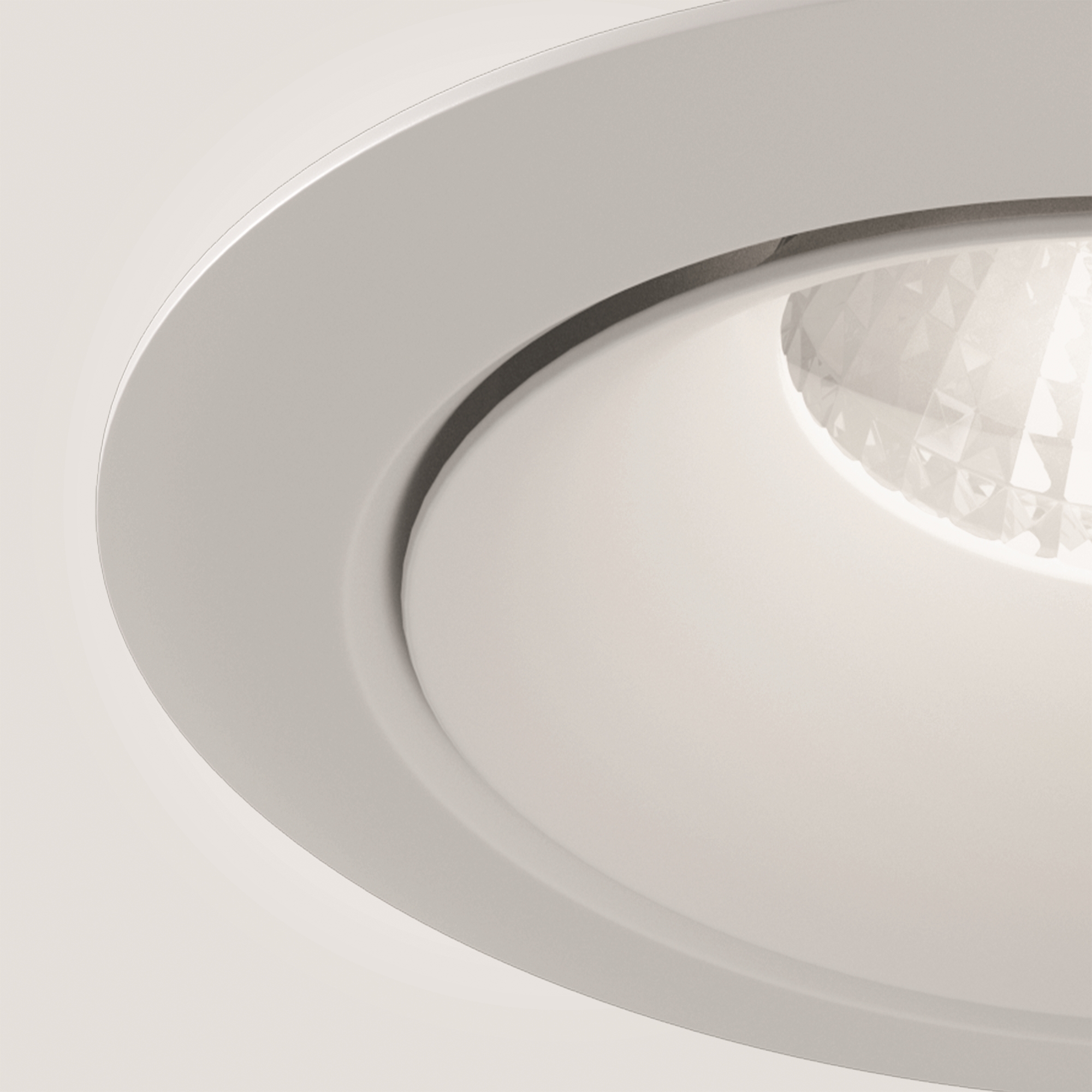 Одной из главных отличительных черт данной модели является наличие декоративного светящегося кольца, которое образуется благодаря специальному зазору вокруг апертуры светильника. LED-модуль, утопленный вглубь корпуса, в сочетании с линзой из акрилового стекла обеспечивает высокий уровень визуального комфорта для глаз, предотвращая эффект ослепления и снижая зрительную утомляемость.