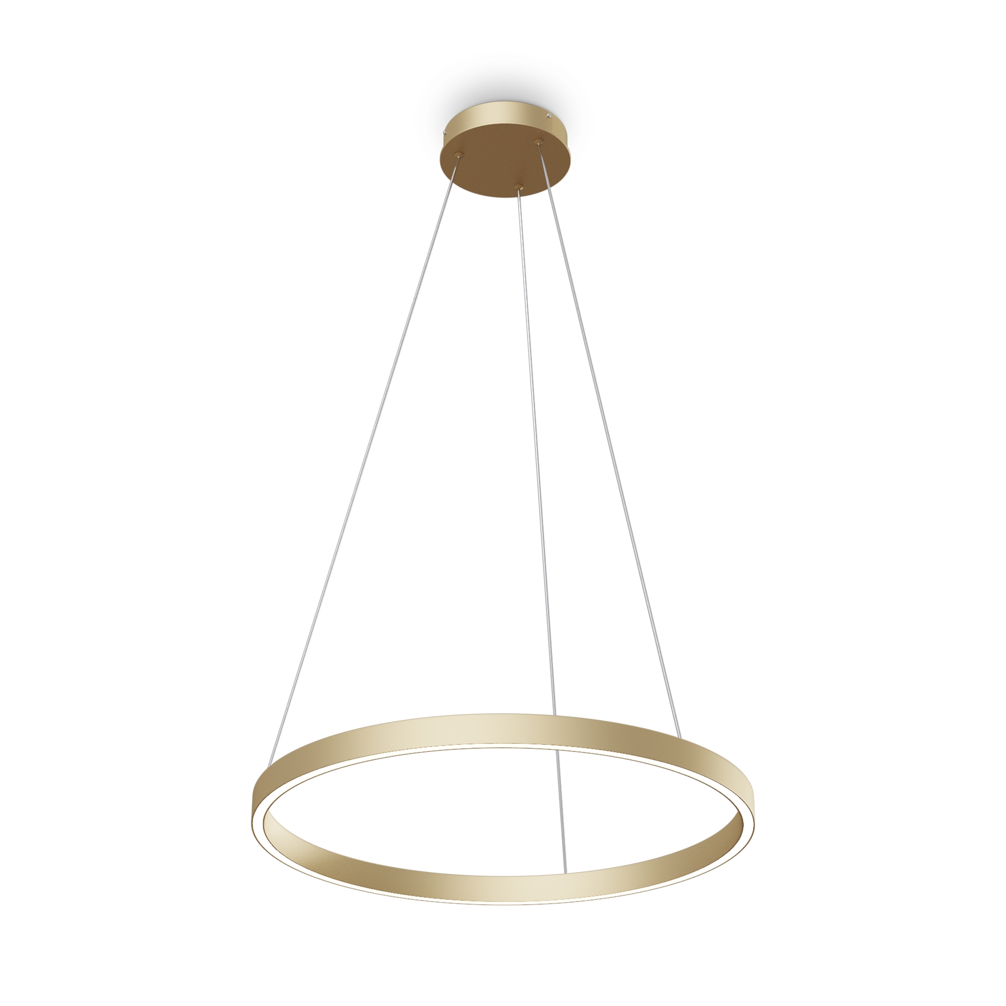 Светильник выполнен в современном стиле Maytoni Modern и представляет собой кольцевую конструкцию диаметром 600 мм. Арматура из высококачественного алюминия окрашена в благородный латунный цвет, что придает модели изысканный вид. Белый силиконовый абажур мягко рассеивает свет, создавая комфортное освещение.