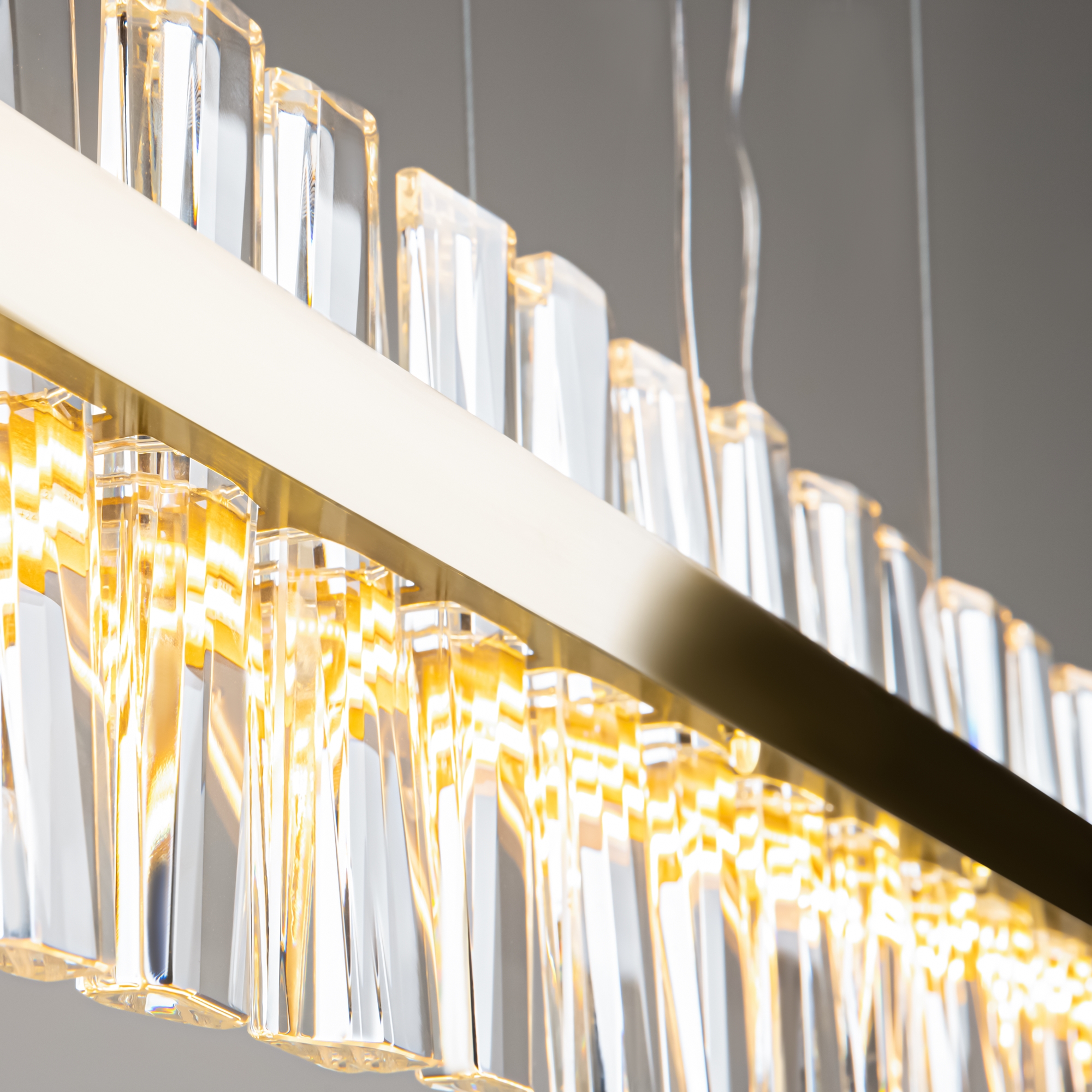 Светильник Mirage идеально подойдет для размещения над обеденным столом, барной стойкой, кухонным островом или в других зонах, где требуется линейное освещение. Хрустальные элементы красиво преломляют свет, создавая уникальную игру бликов в интерьере.
