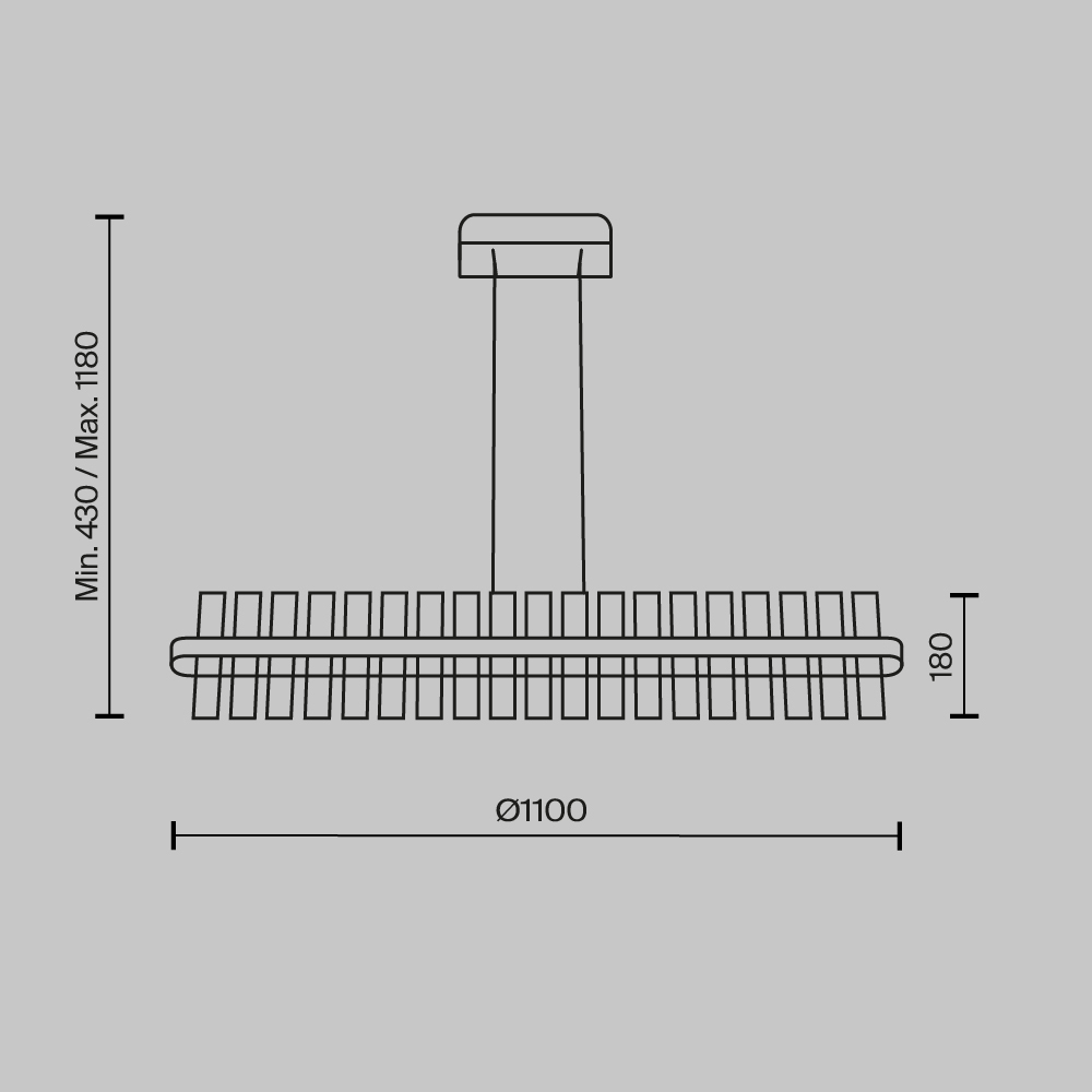 - Регулируемая высота подвеса (от 430 до 1180 мм) благодаря системе тросов
